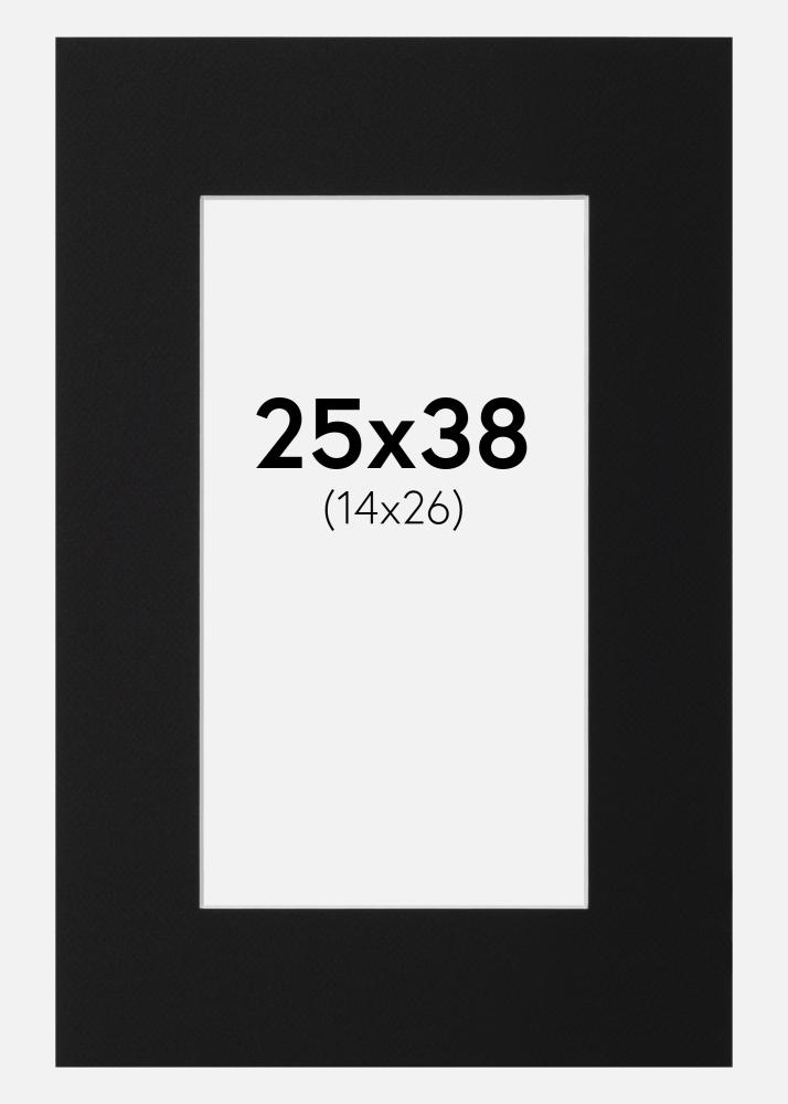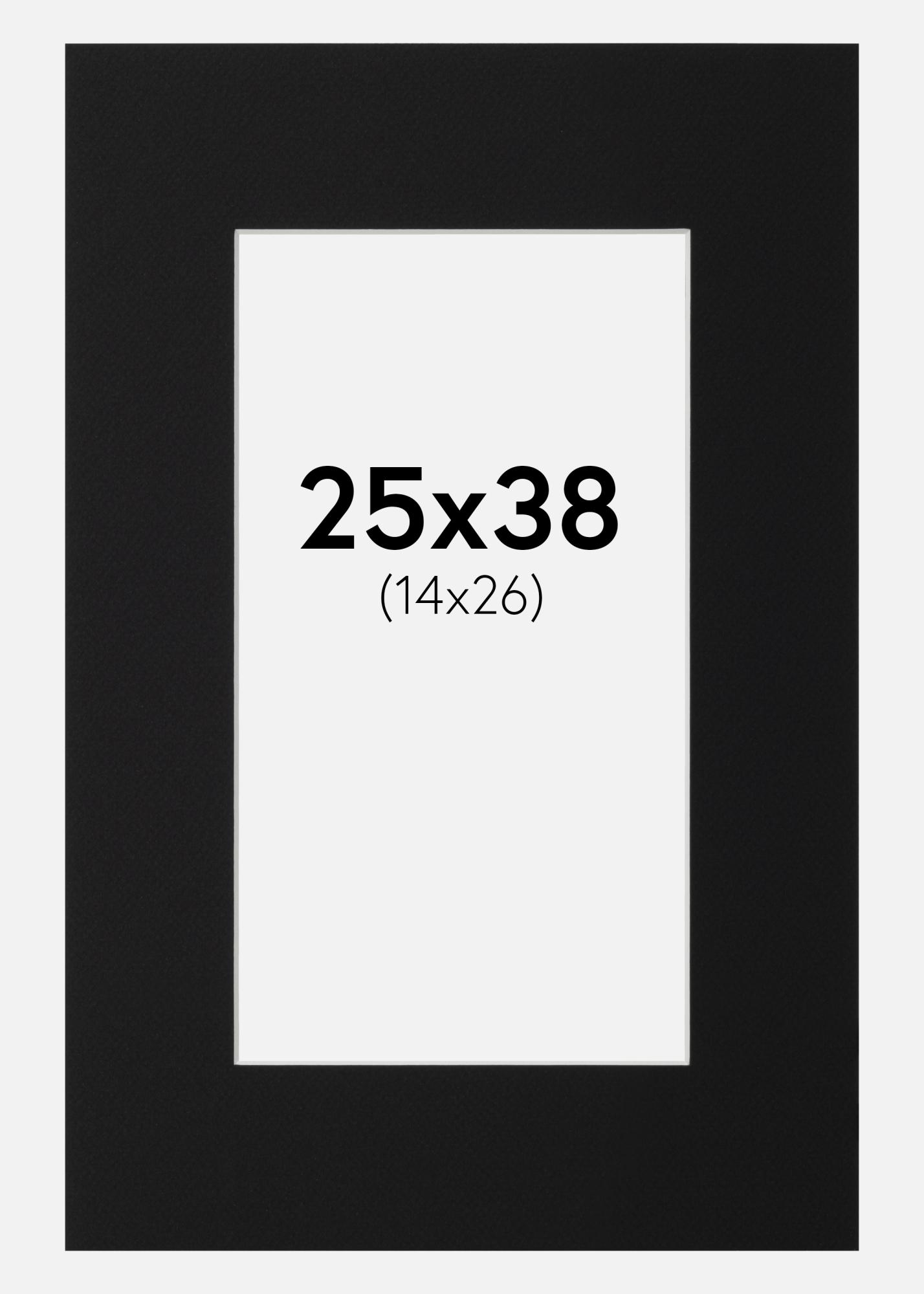 Tämä tyylikäs musta paspartuuri on täydellinen valinta antaaksesi kuvillesi ja taideteoksillesi tyylikkään kehystyksen. Ulkomitoiltaan 25x38 cm se on suunniteltu sopimaan kuville, joiden koko on 15x27 cm, mikä tekee siitä ihanteellisen muotokuville, taideteoksille tai valokuville, joita haluat korostaa maukkaasti.