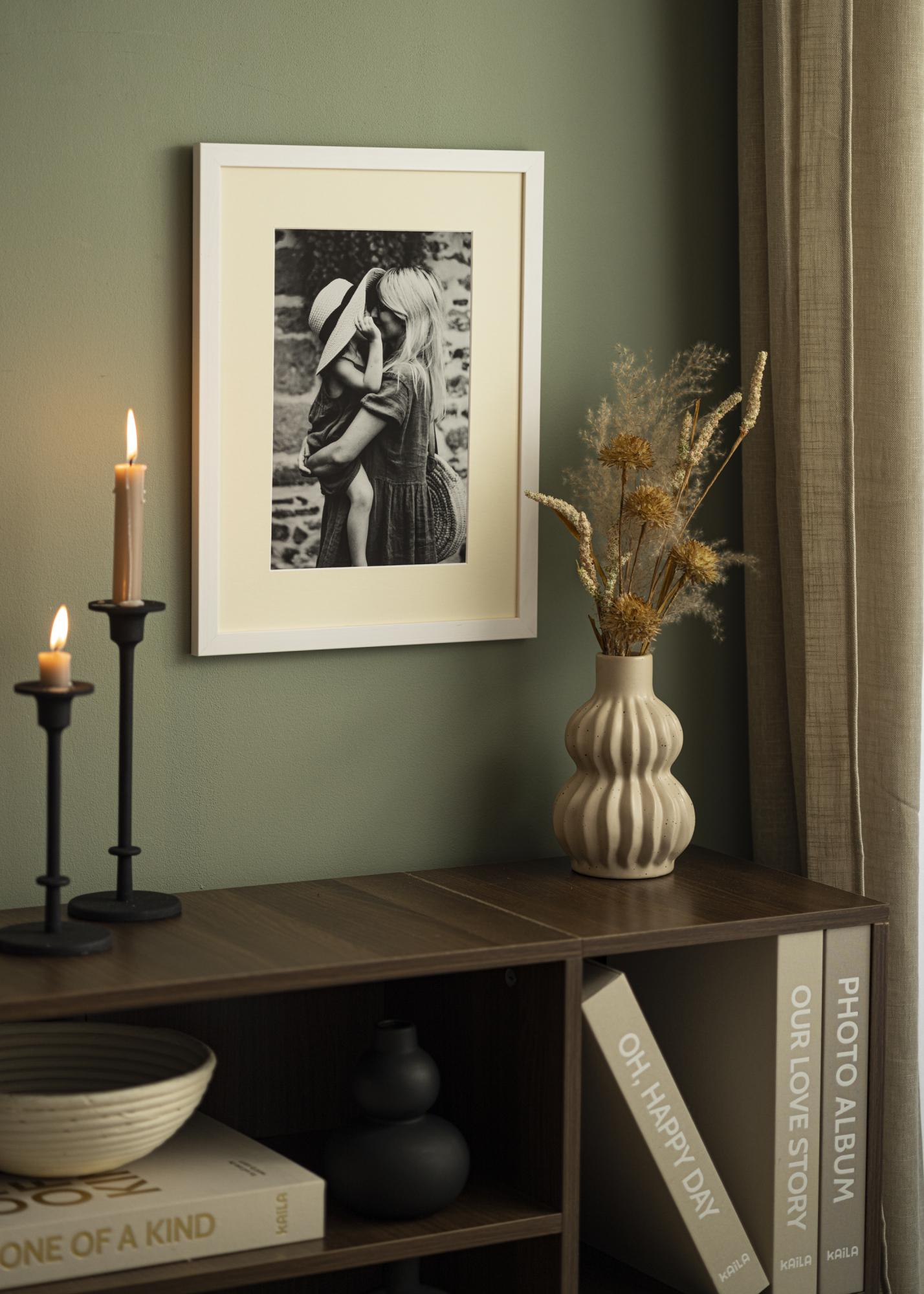 Tämän paspatuurin kauniin antiikinvalkoinen sävy sopii kaikkiin kuva-aiheisiin ja antaa taululle raikkaan ilmeen. Materiaali on peräisin kestävästi hoidetuista metsistä ja aukkopahvi on happovapaa sekä PH-neutraali kuvasi laadun suojaksi.