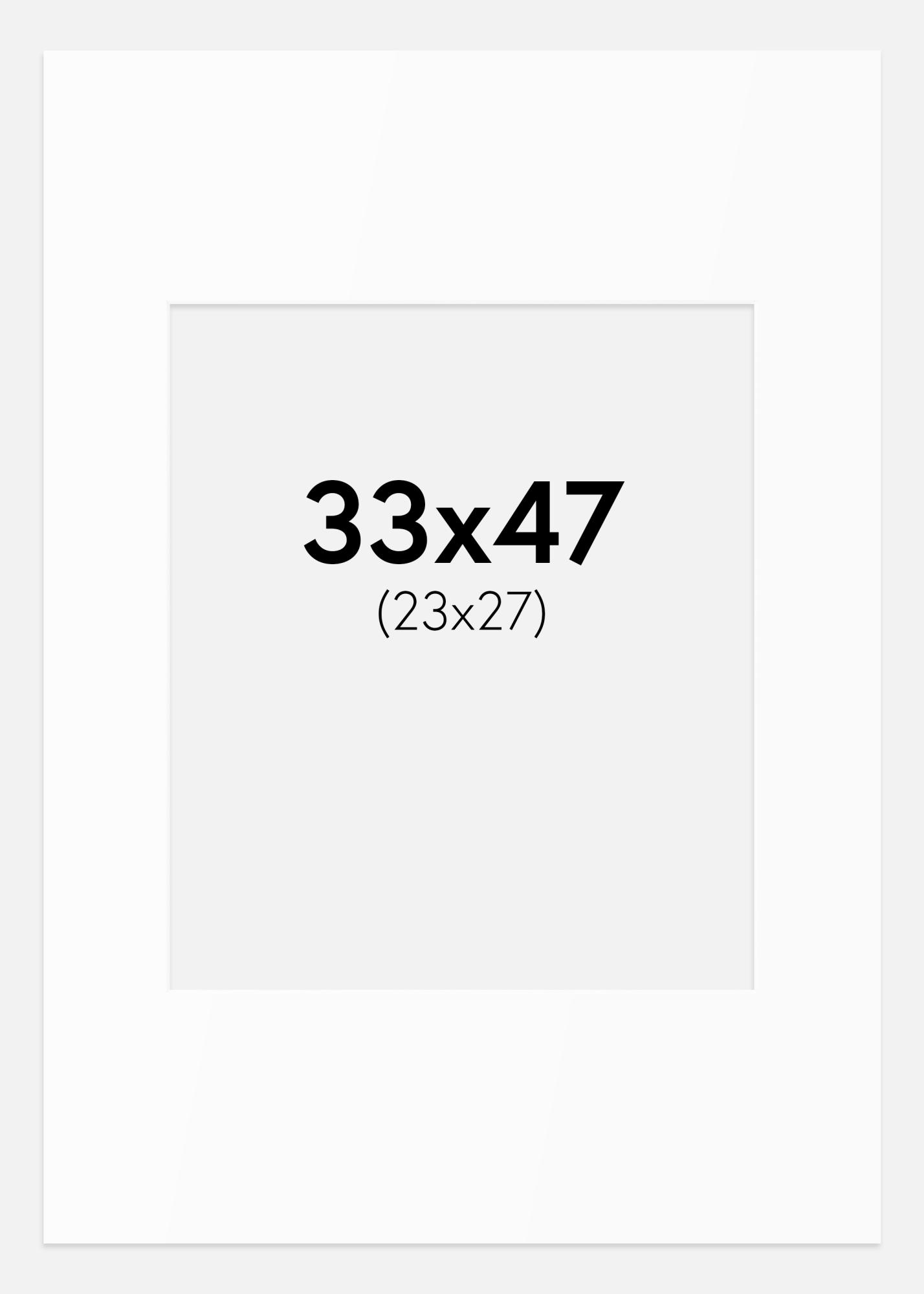 Tämä tyylikäs paspartuu valkoisessa sävyssä on täydellinen valinta korostamaan kuviasi ja taideteoksiasi. Viistoon leikattu sisäreuna samassa valkoisessa värissä luo tyylikkään kehystämisen, joka antaa syvyyttä ja ulottuvuutta aiheellesi. Paspartuu on suunniteltu sopimaan kuville, joiden koko on 24x28 cm, kun taas ulkomitta on 33x47 cm, mikä tekee siitä ihanteellisen monenlaisiin kehyksiin.