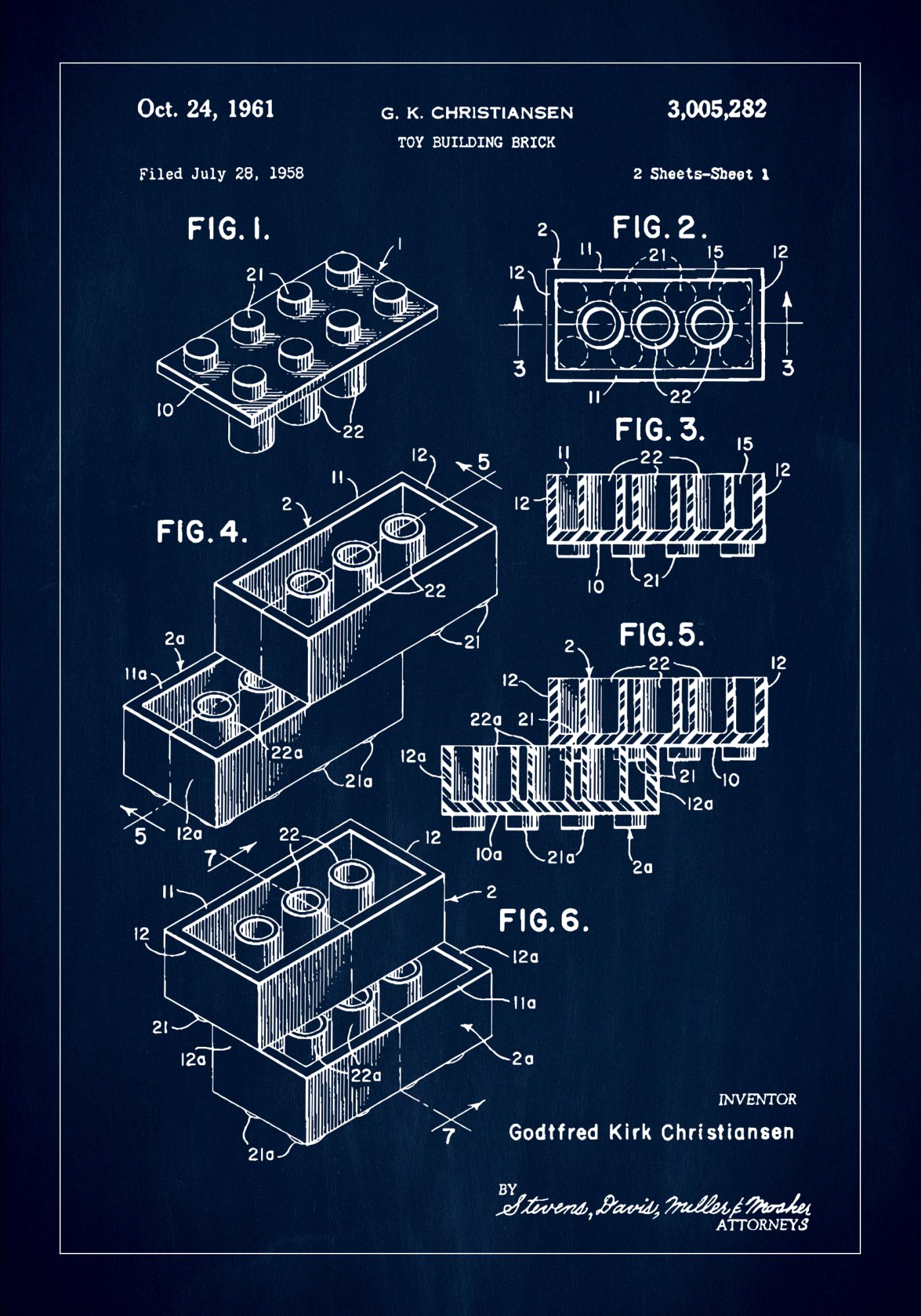 Patent Print - Lego Block I - Blue (13x18 cm)