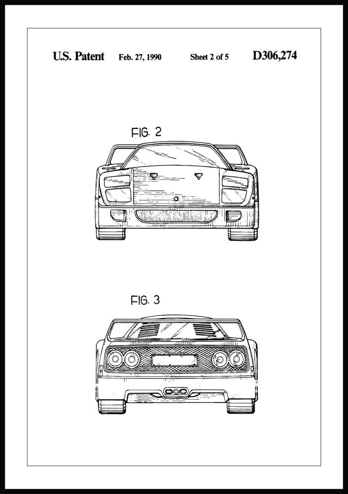 Patenttipiirustus - Ferrari F40 III - Juliste (13x18 cm)