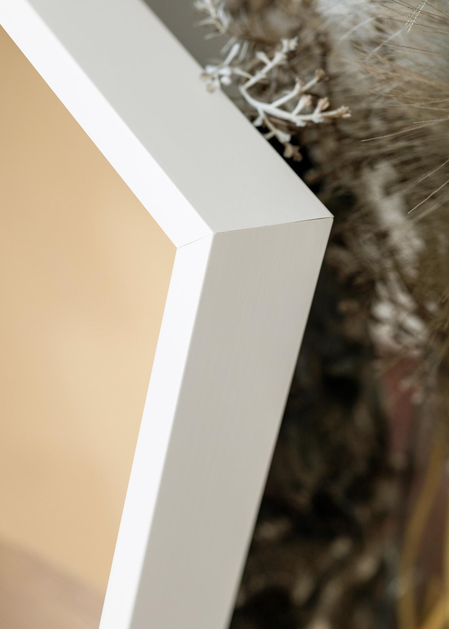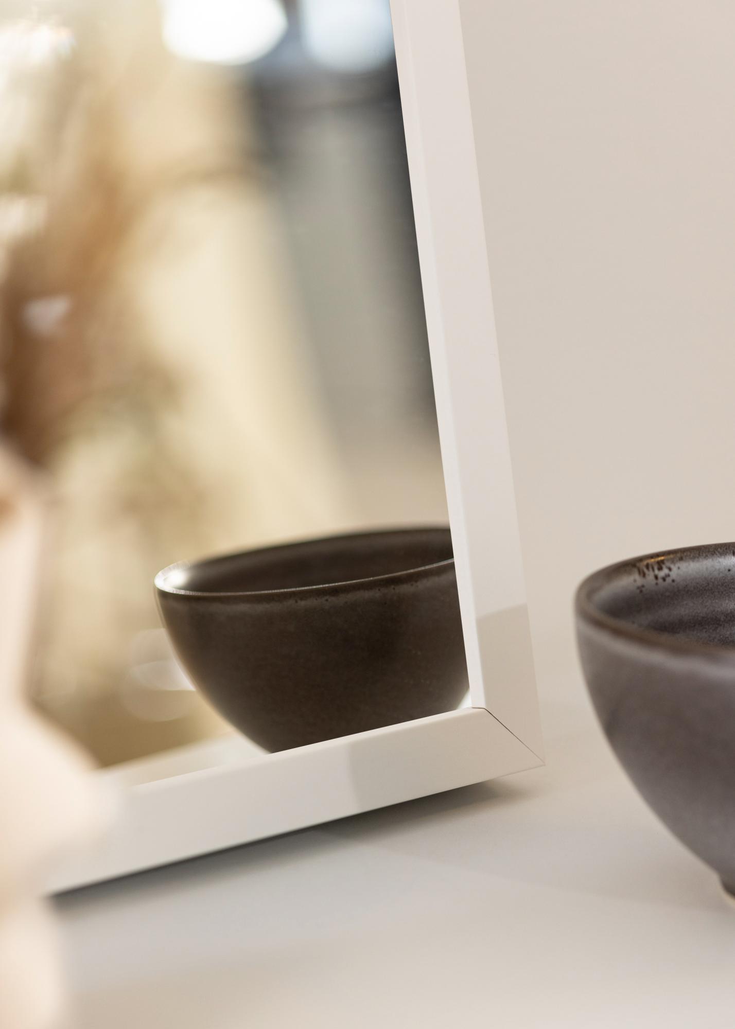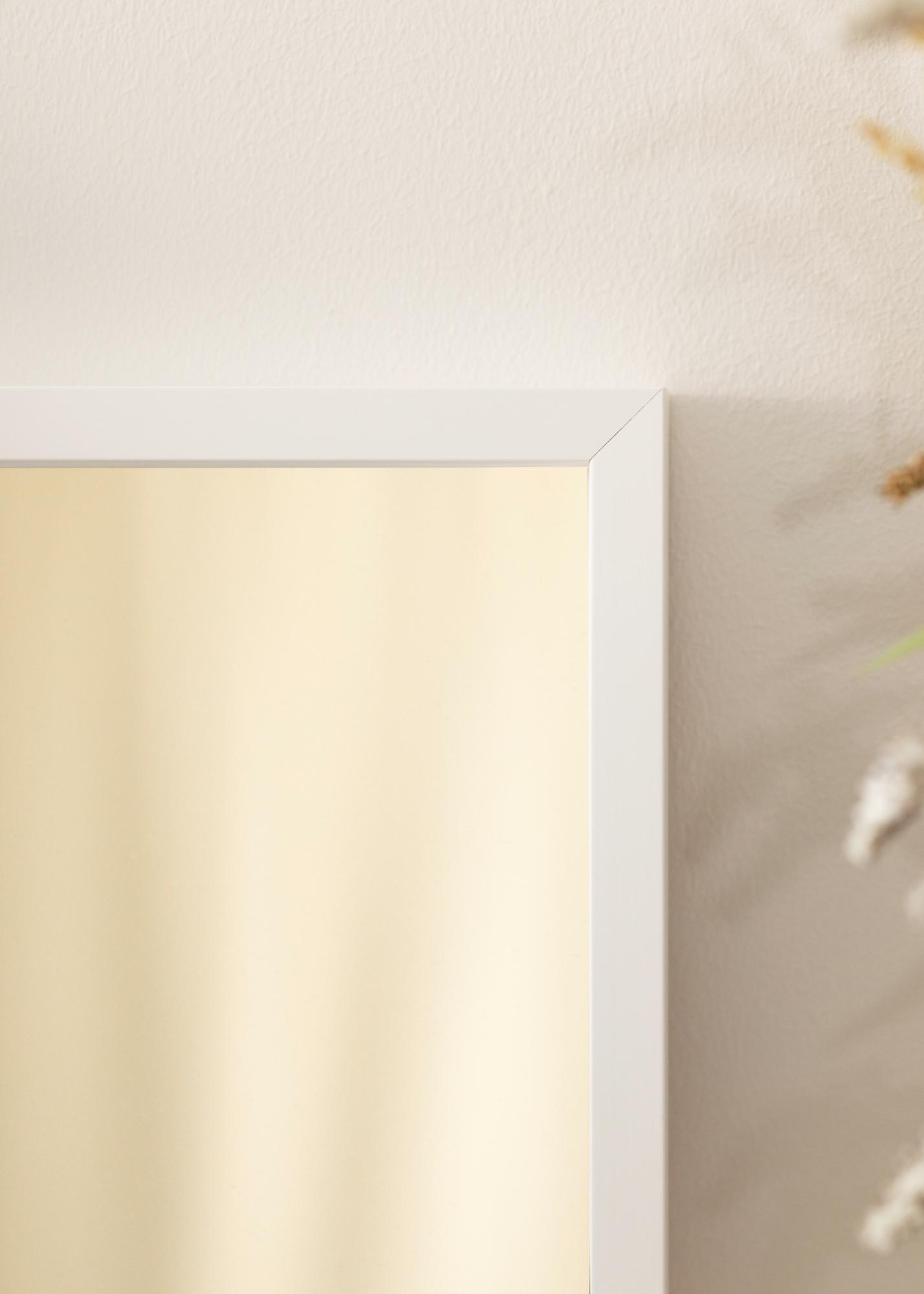 Peili Balder Valkoisen kehys on 20 mm leveä ja valmistettu männystä, mikä antaa vakaan ja kestävän rakenteen. Peilin syvyys on 45 mm, mikä tekee siitä jämäkän tuntuisen ilman, että se vie liikaa tilaa. Kapea kehyslista luo minimalistisen muotoilun, joka antaa peililasille kaiken huomion.