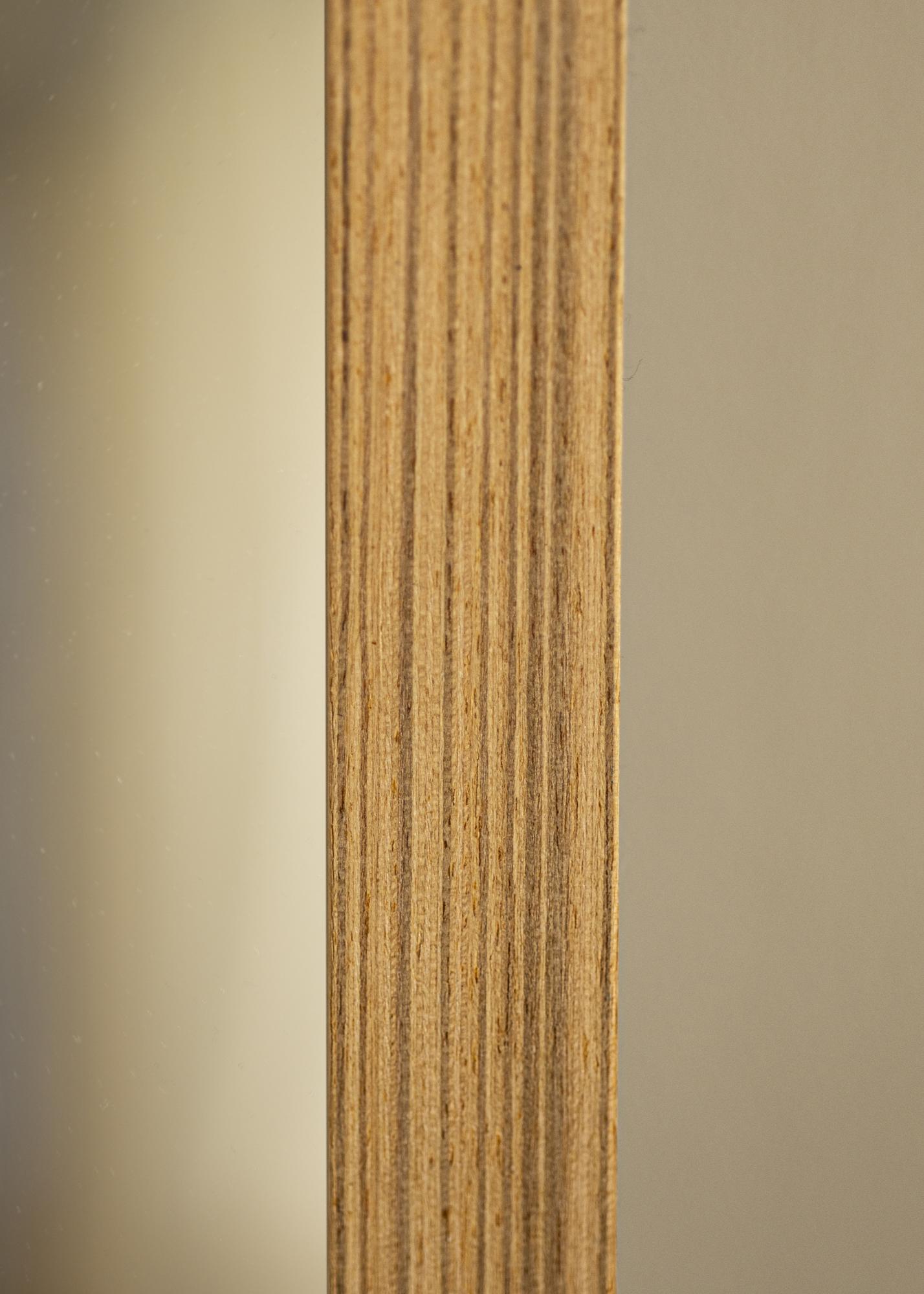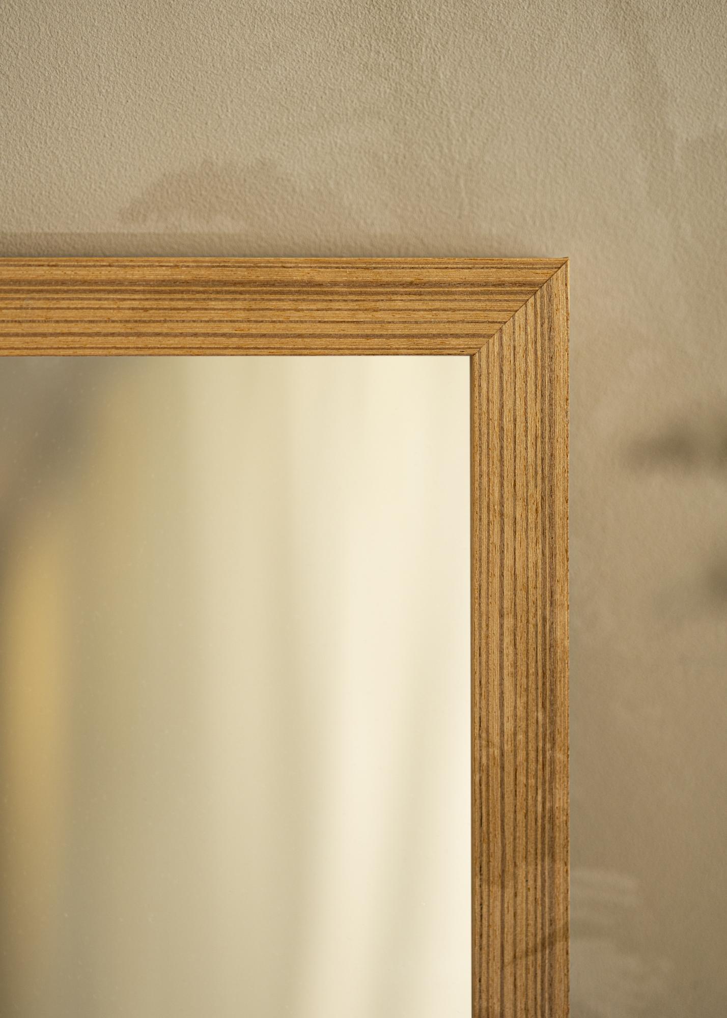 Peilin kehys on 28 mm leveä ja 33 mm syvä, mikä tarjoaa vakaan ja tukevan tunteen. Valmistettu männyistä, tämä peili tarjoaa kestävyyttä, joka säilyy ajan myötä. Kehyksen korostettu rakenne luo elävän syvyyden ja antaa tuntuvan ulottuvuuden, joka tekee peilistä elävän ja dynaamisen.