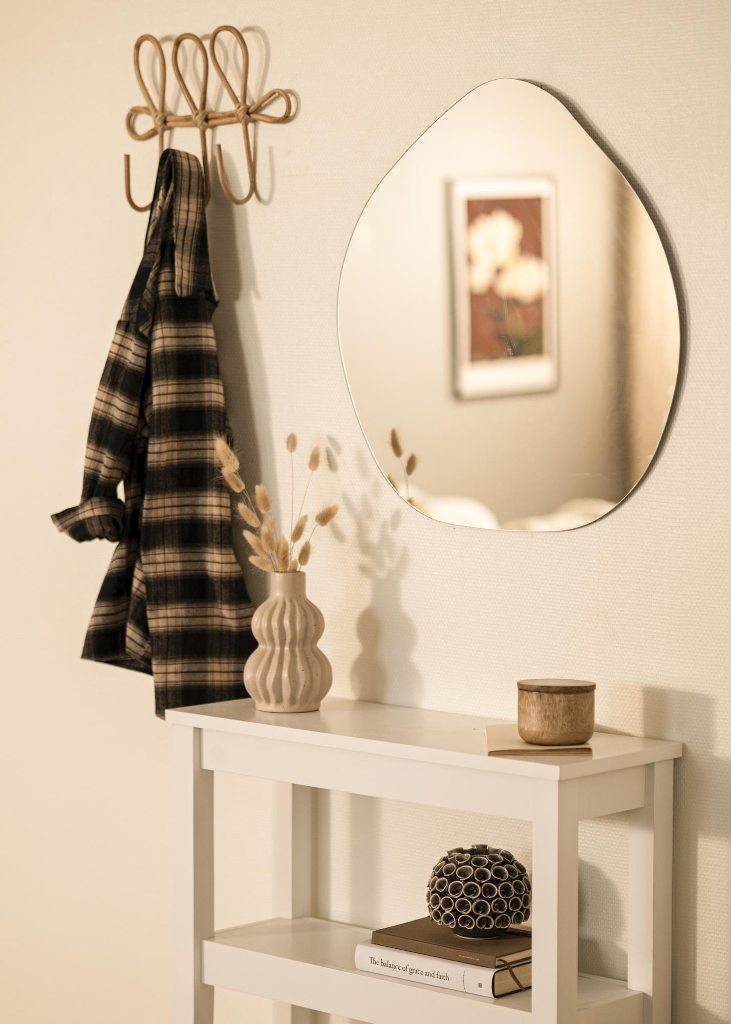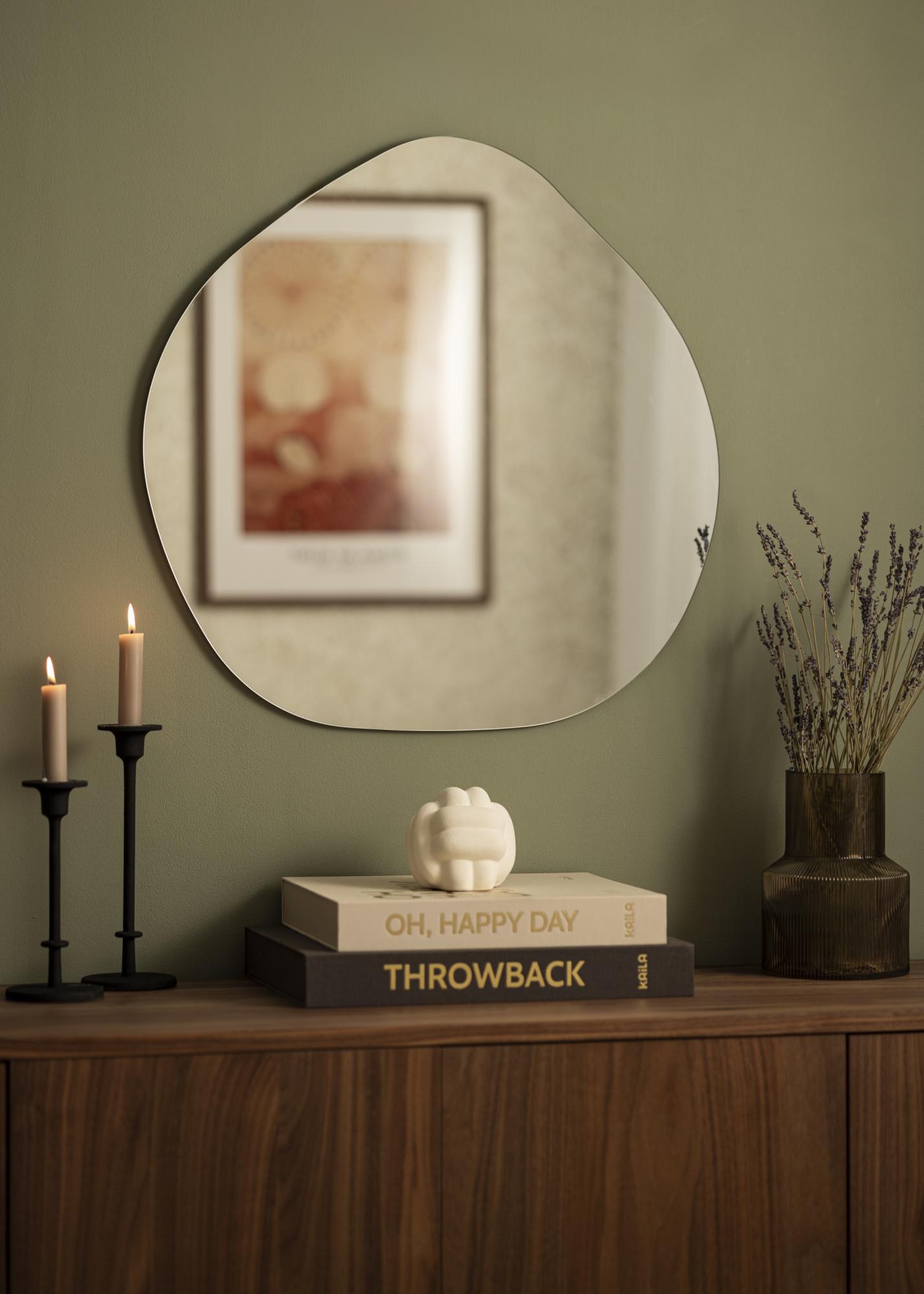 Löydä ainutlaatuinen viehätys asymmetrisesti muotoillusta peilistämme, joka on todellinen katseen vangitsija jokaiseen huoneeseen. Sen pehmeät linjat ja moderni muotoilu tarjoavat täydellisen tasapainon toimivuuden ja tyylin välillä. Mitat 60x60 cm tekevät siitä tarpeeksi suuren ollakseen käytännöllinen ja samalla se säilyttää hienovaraisen läsnäolon seinässä.