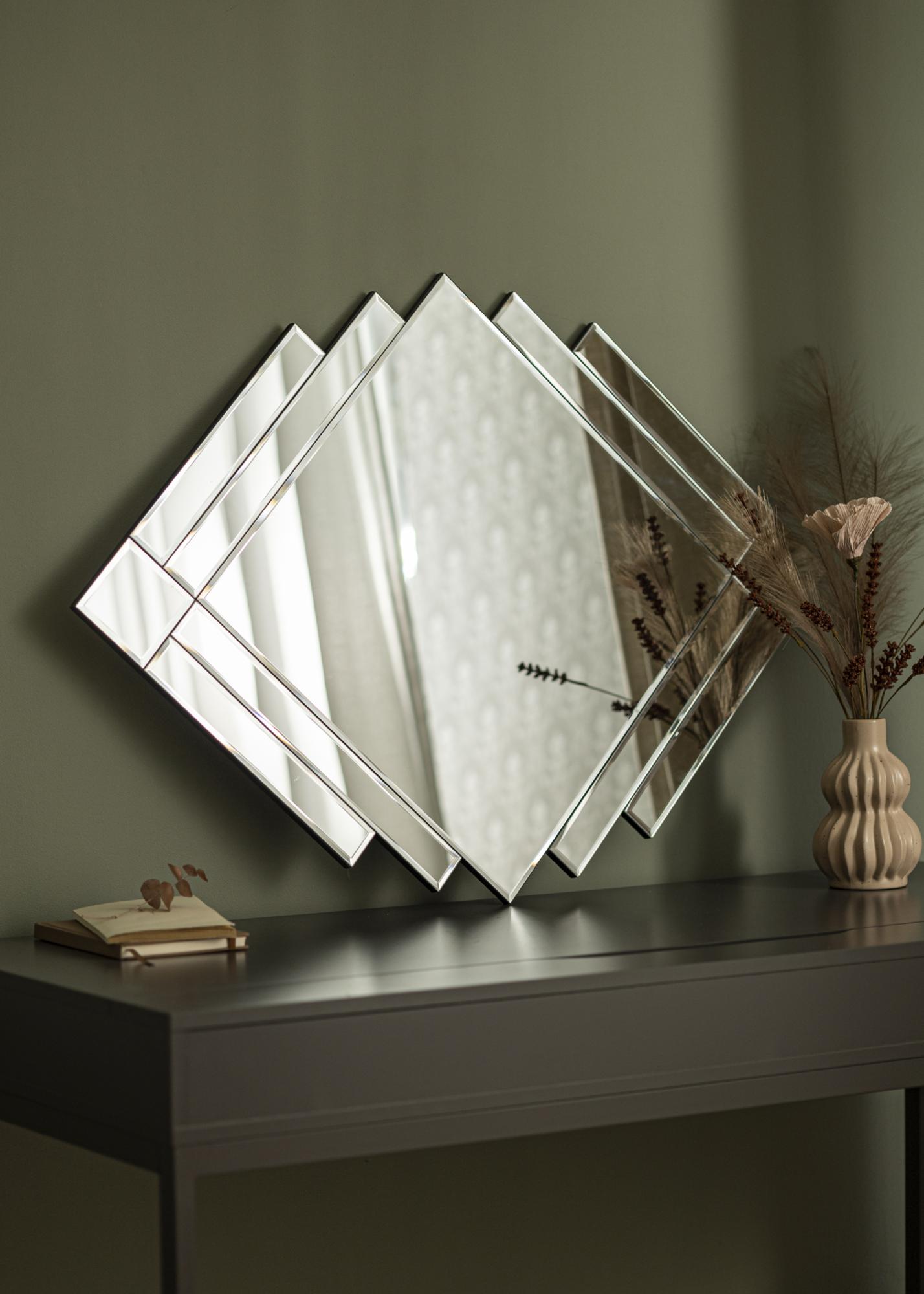 Löydä peili, joka rikkoo normeja ja tuottaa taiteellisen kosketuksen kotiisi. Sen monipuolisten peilipaneelien ansiosta tämä peili tarjoaa harvinaisen ja silmiinpistävän muodon, joka varmasti herättää keskustelua. Sen koko 71x99 cm tekee siitä loistavan katseenkiinnittäjän, missä se sitten sijaitseekin.