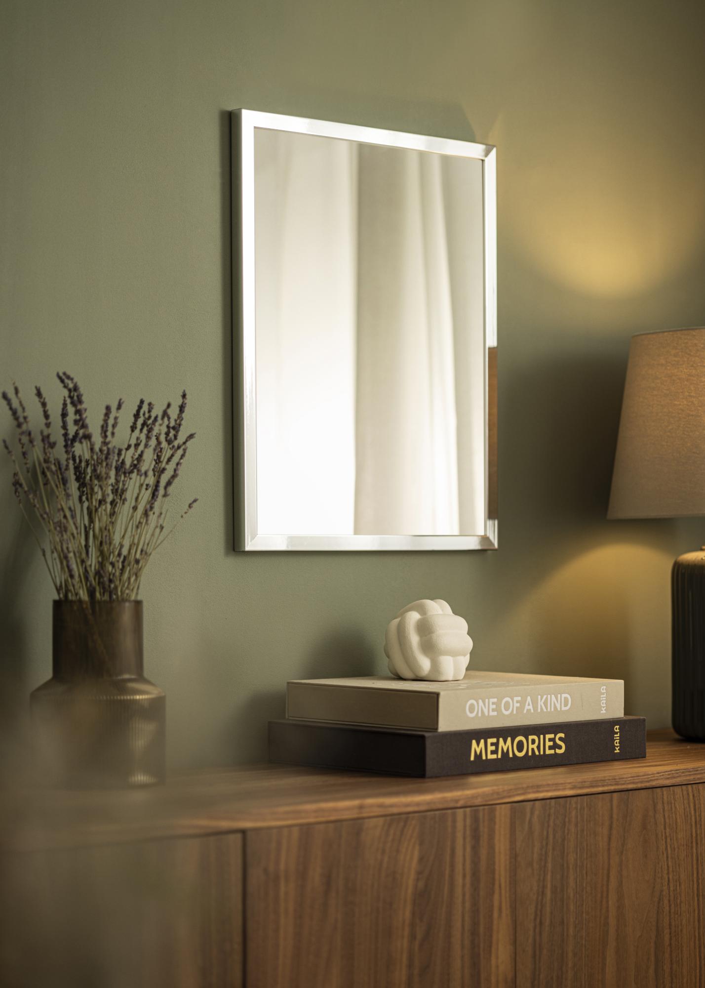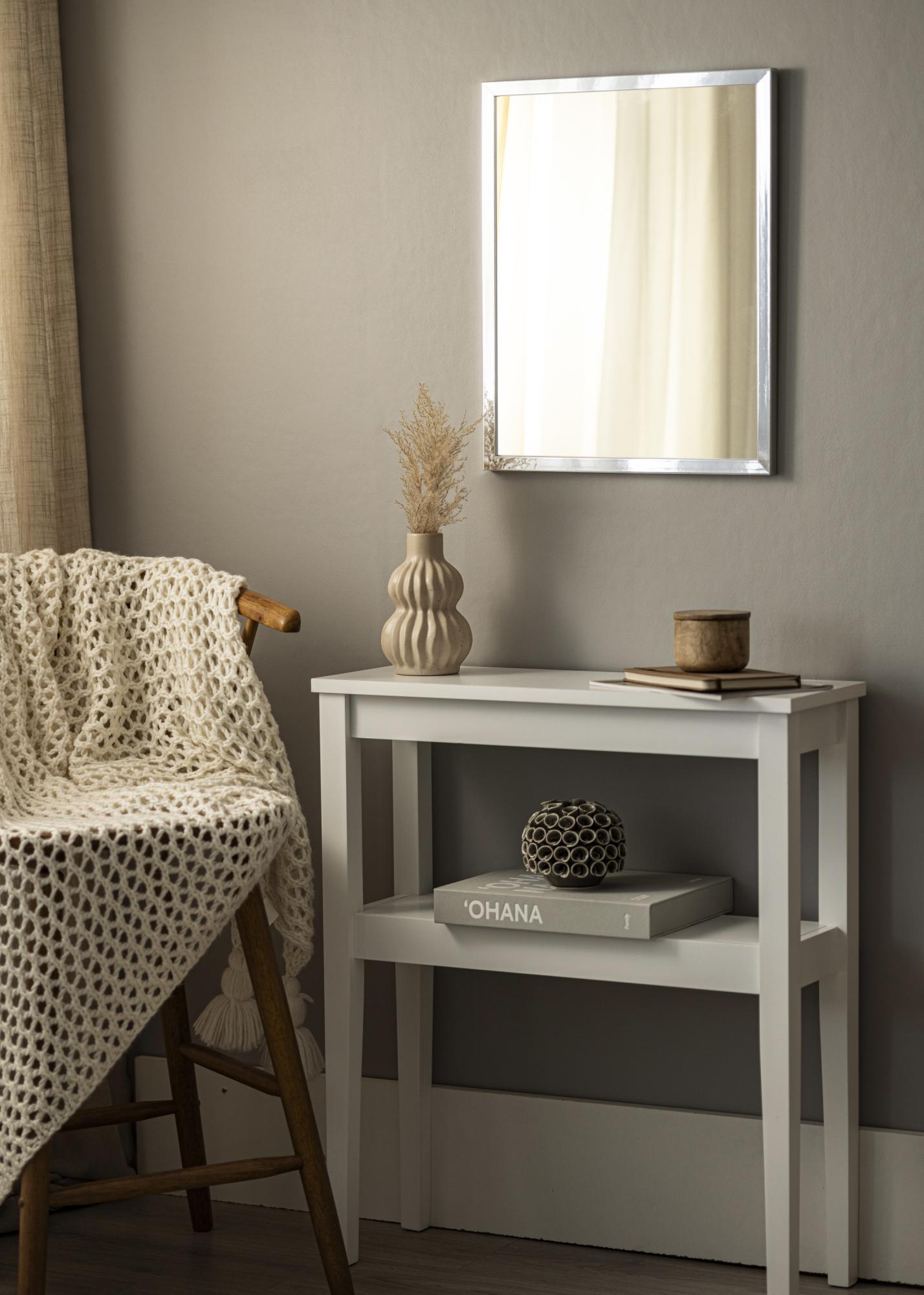 Peili Devon Silver on mittatilauspeili, jonka valmistamme itse, mikä tarkoittaa, että voit saada sen juuri ne mitat, jotka sopivat kotiisi parhaiten. Sen tyylikäs hopeinen viimeistely ja peilipintainen pinta tekevät siitä hienostuneen lisän mihin tahansa huoneeseen. Se heijastaa valoa tavalla, joka luo modernin ja kutsuvan ilmapiirin, täydellinen tuomaan huoneeseen avaruuden ja valon tuntua.