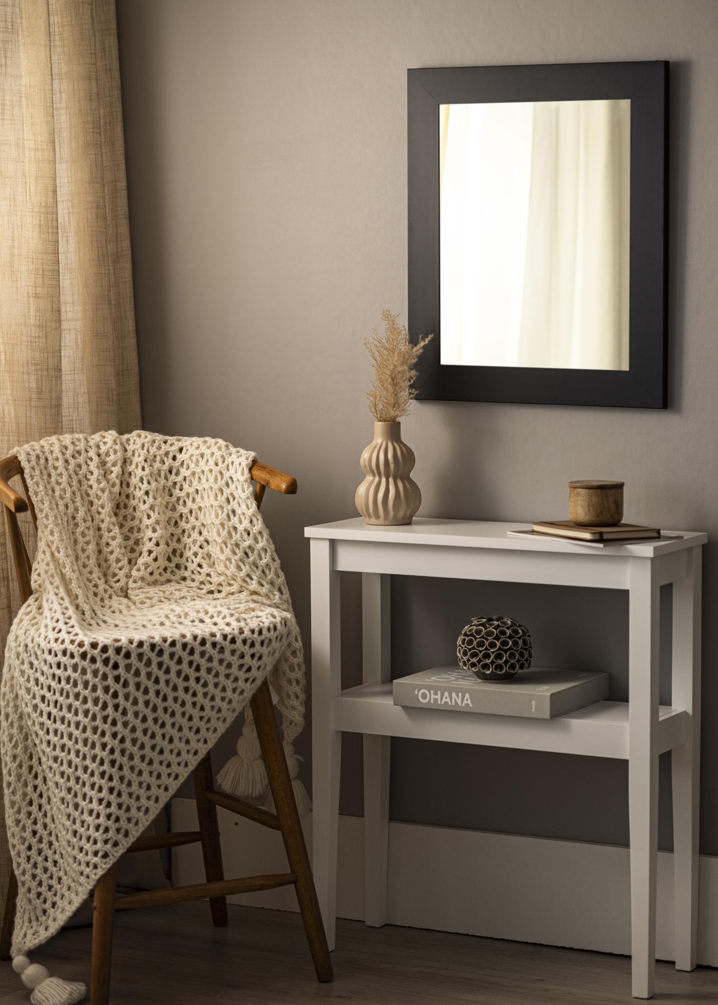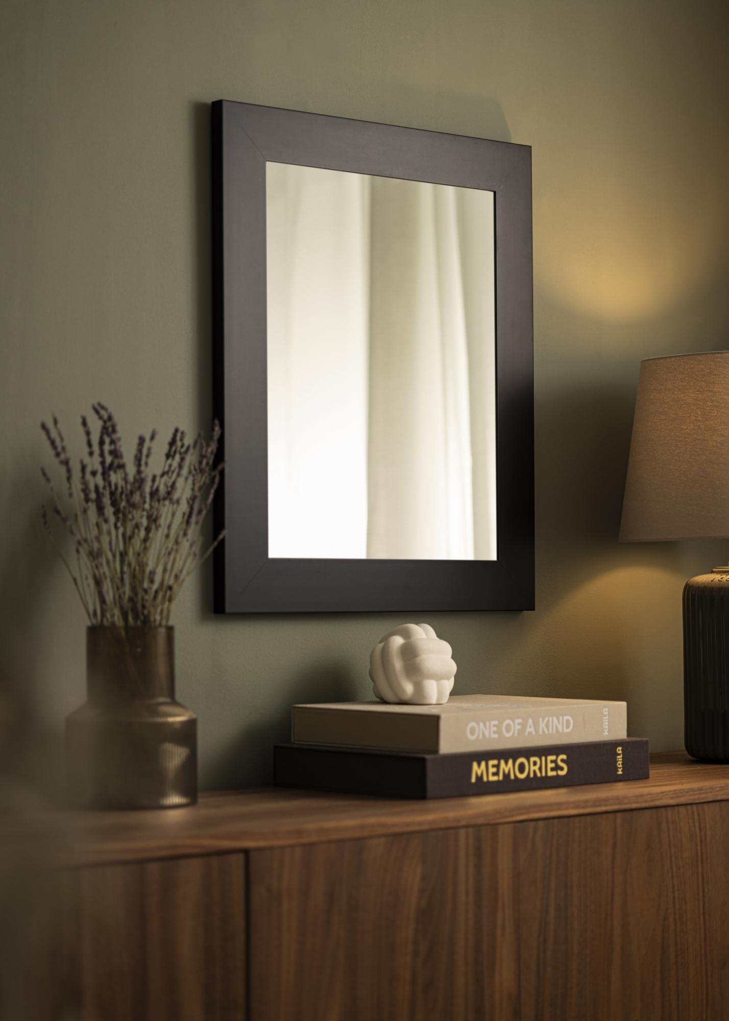 Tässä peilissä on elegantti musta väri, joka antaa modernin ja tyylikkään vaikutelman. 69 mm leveä mattamusta Ayopuusta valmistettu kehyslistainen lisää peilin hienostunutta ulkonäköä ja tekee siitä erinomaisen lisän sekä klassisiin että moderneihin sisustustyyleihin. 22 mm syvyydellään peilillä on vankka rakenne, joka varmistaa sen kestävyyden ja vakauden.