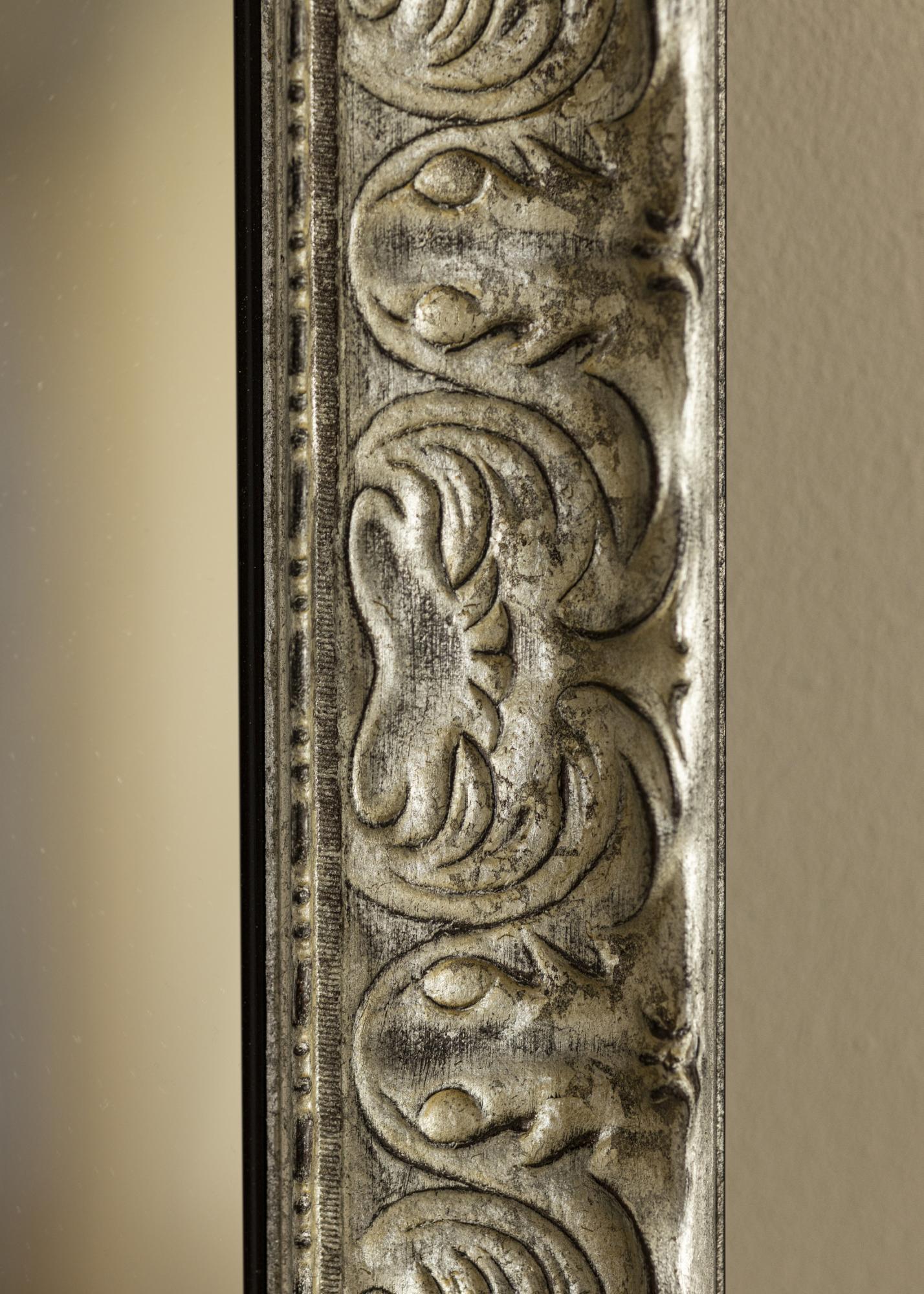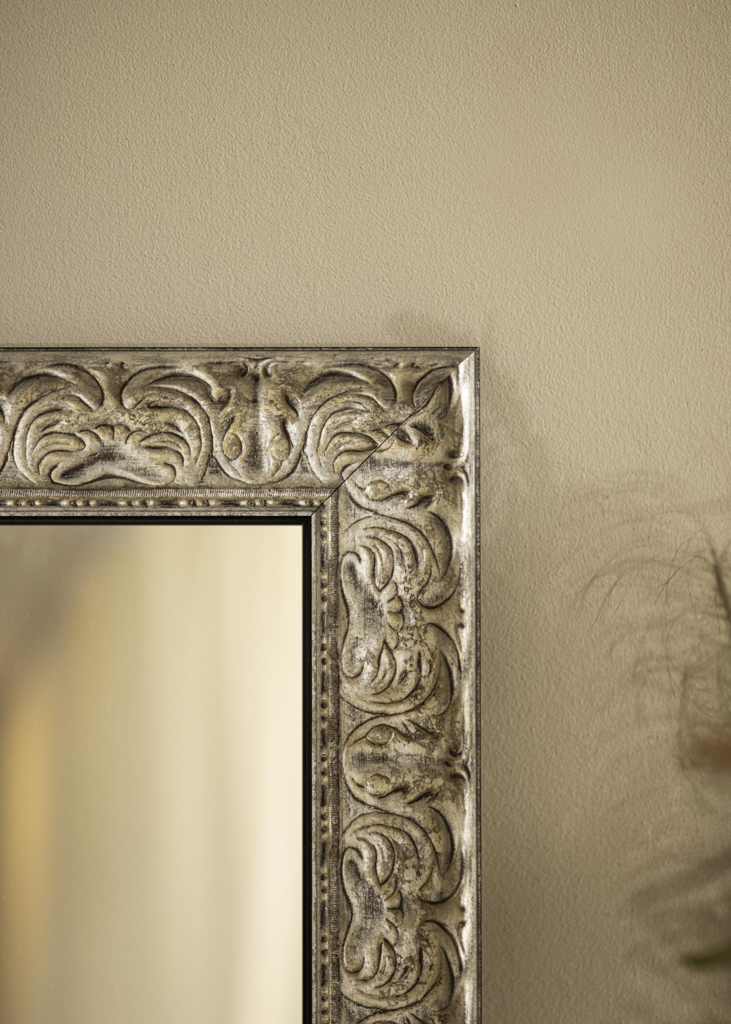 Peili Durham Silver on mittatilaustyönä valmistettu peili, jonka valmistamme sopimaan juuri sinun tarpeisiisi. Sen hopeanvärisellä kehyksellä ja antiikkiviimeistelyllä se tuo tyylikkään lisän mihin tahansa huoneeseen. Kehyksen koristeellinen reliefi antaa peilille ainutlaatuisen luonteen ja tuo rustiikkisen mutta samalla elegantin tunteen.