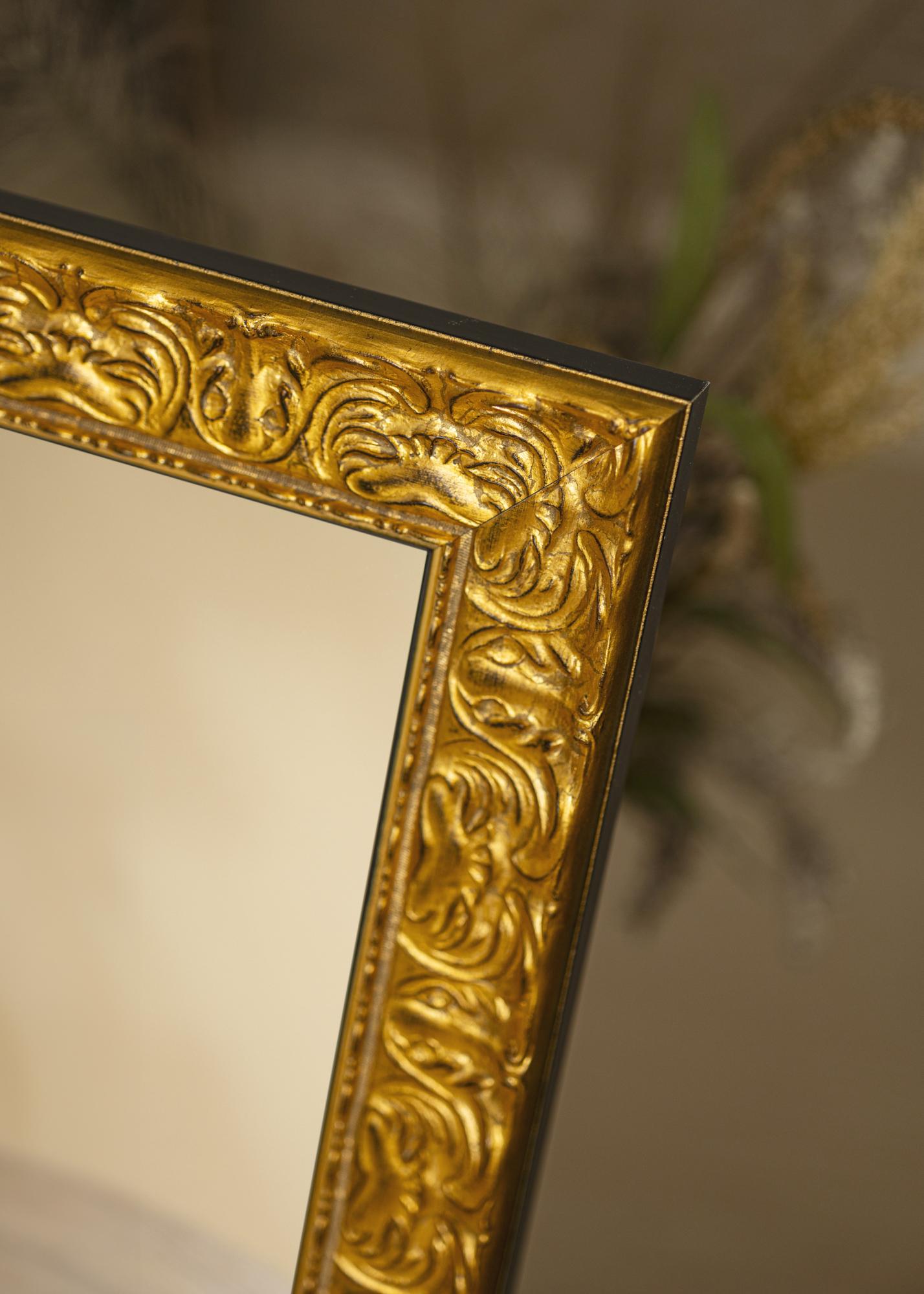 Peili Durham Kullan kehys on 70 mm leveä ja 35 mm syvä, mikä antaa peilille vankan ja tukevan tunteen. Valmistettu männystä, se yhdistää kestävyyden ja estetiikan. Kultavärinen pinta on kauniisti antiikkiviimeistelty, mikä korostaa peilin ajattoman viehätyksen ja eleganssin.