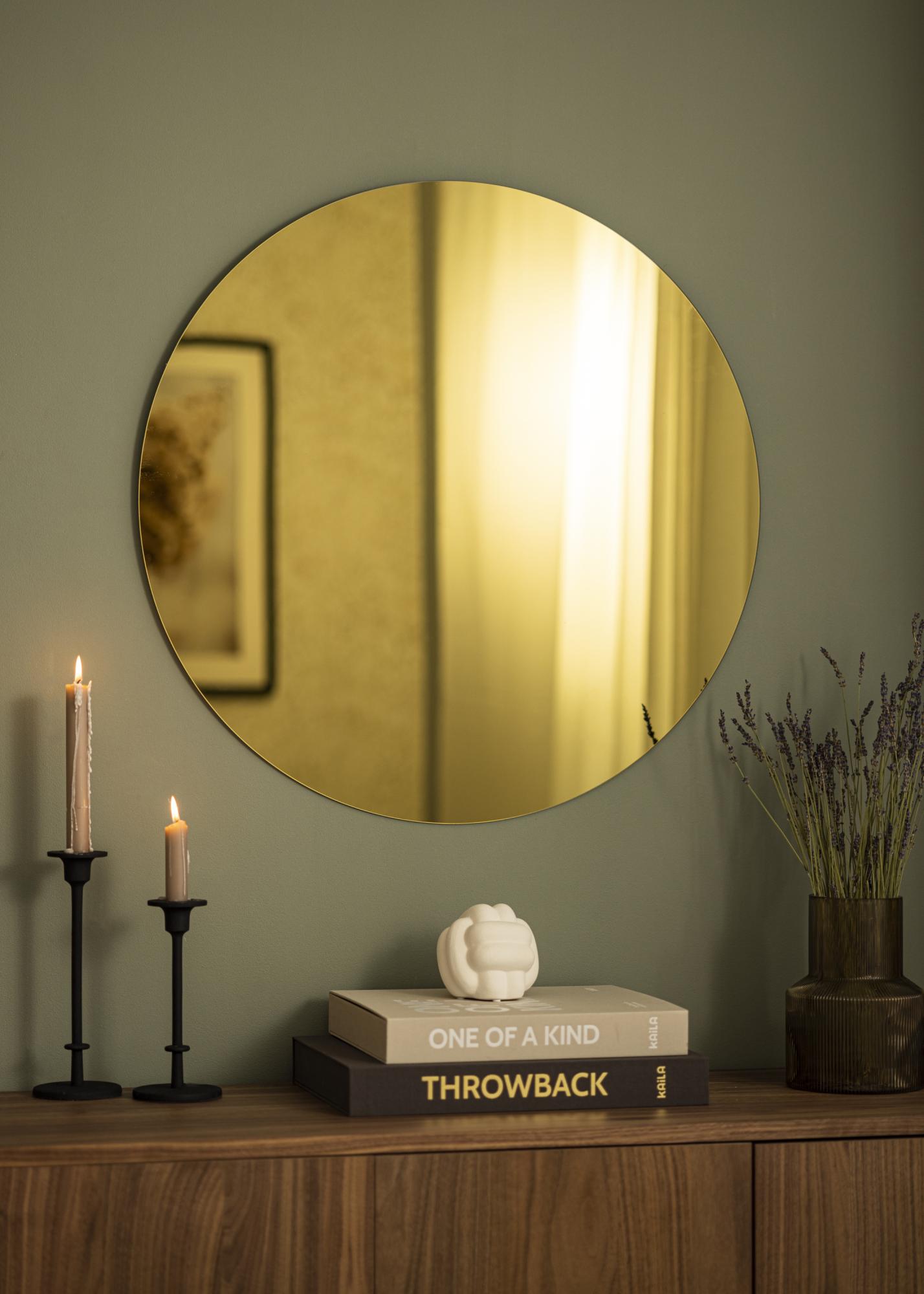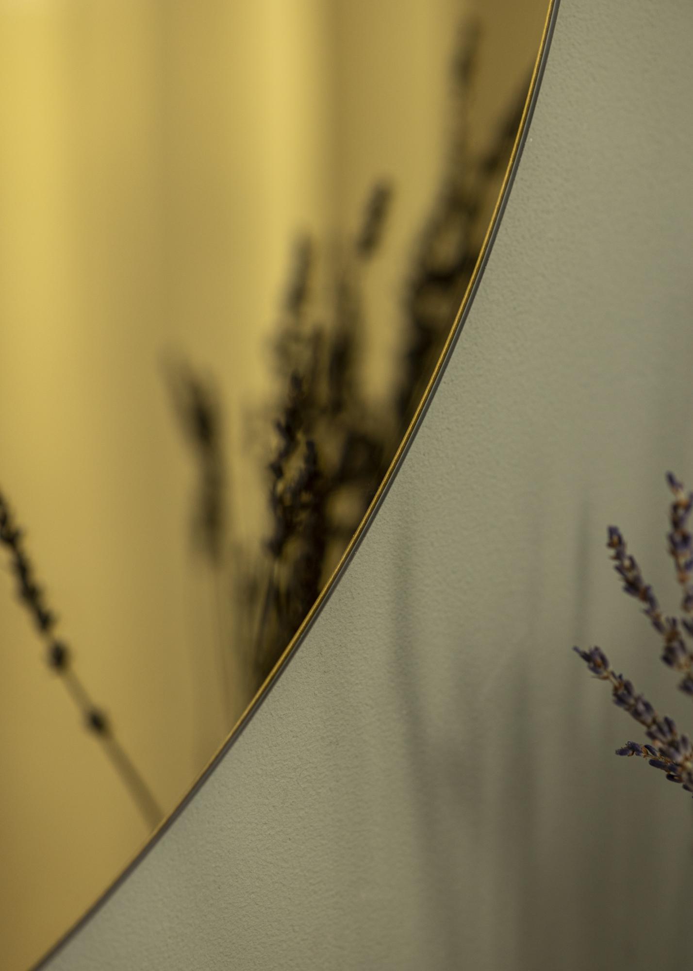 Tämä on hienostunut ja minimalistinen seinäpeili, jonka keltainen sävy tuo mielenkiintoisen vivahteen kotiisi. Ohut peililasi on keltaiseksi sävytetty, mutta antaa kuitenkin hillityn ja siistin vaikutelman. Tyylikästä pyöreää muotoa täydentää loistavasti ohut peililasi.