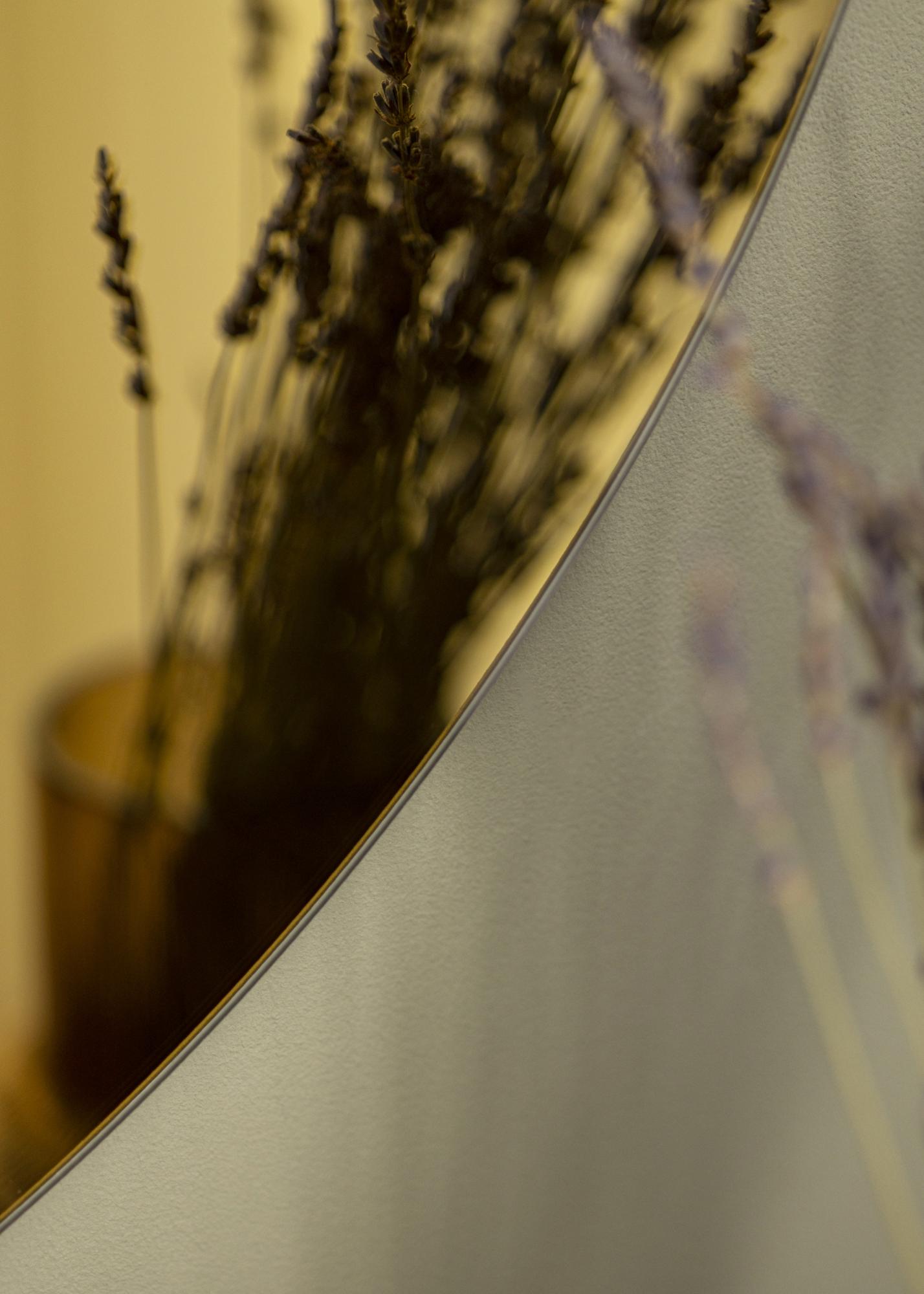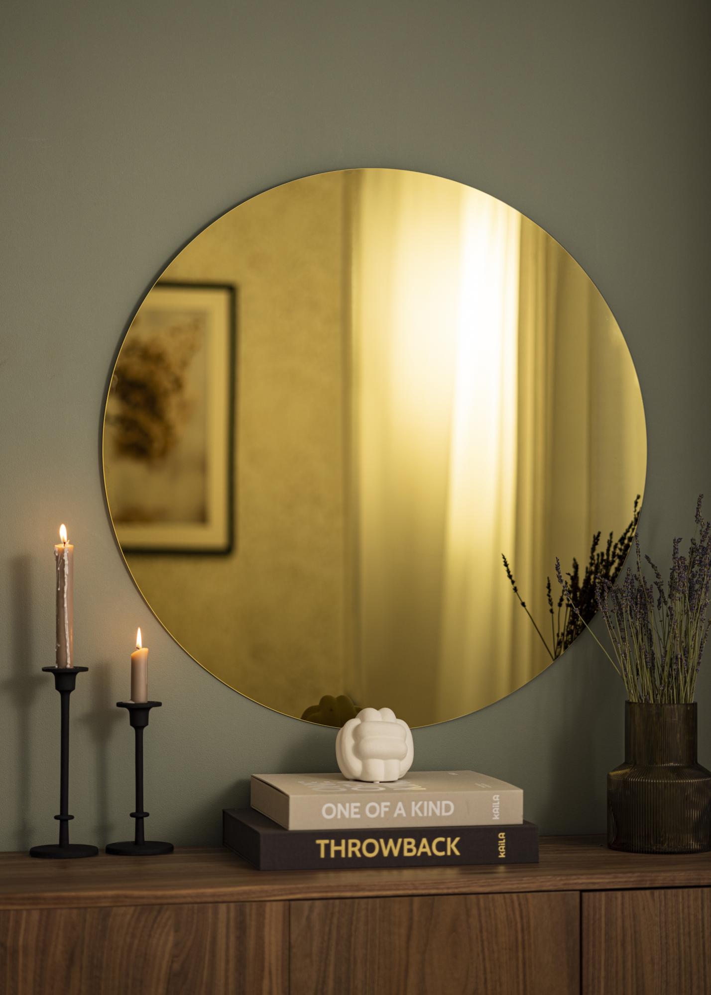 Tämä on hienostunut ja minimalistinen seinäpeili, jonka keltainen sävy tuo mielenkiintoisen vivahteen kotiisi. Ohut peililasi on keltaiseksi sävytetty, mutta antaa kuitenkin hillityn ja siistin vaikutelman. Tyylikästä pyöreää muotoa täydentää loistavasti ohut peililasi.
