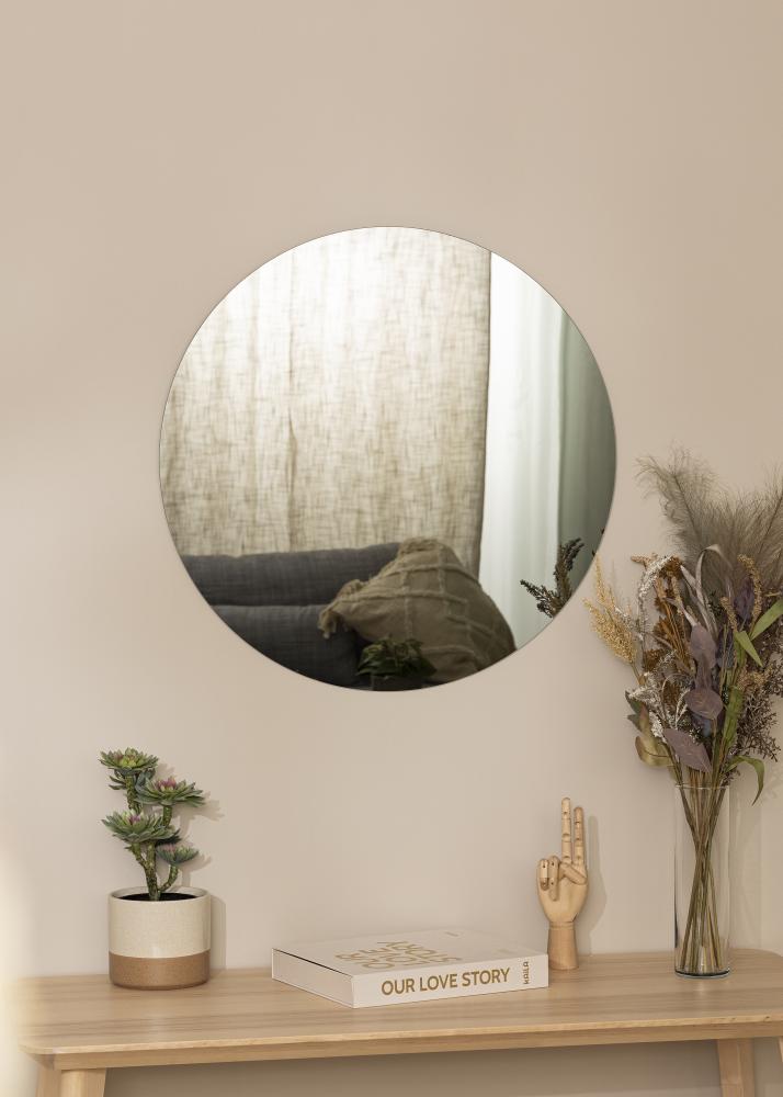 Haluatko superhienostuneen peilin, jolla on hillitty ilme? Tässä pyöreässä seinäpeilissä on harmaaksi sävytetty peililasi ja kehyksetön muotoilu. Se antaa hieman tummemman ilmeen, samalla kun peililasi heijastaa valoa ja piristää huonetta. Tämä peili on 70 cm halkaisijaltaan.