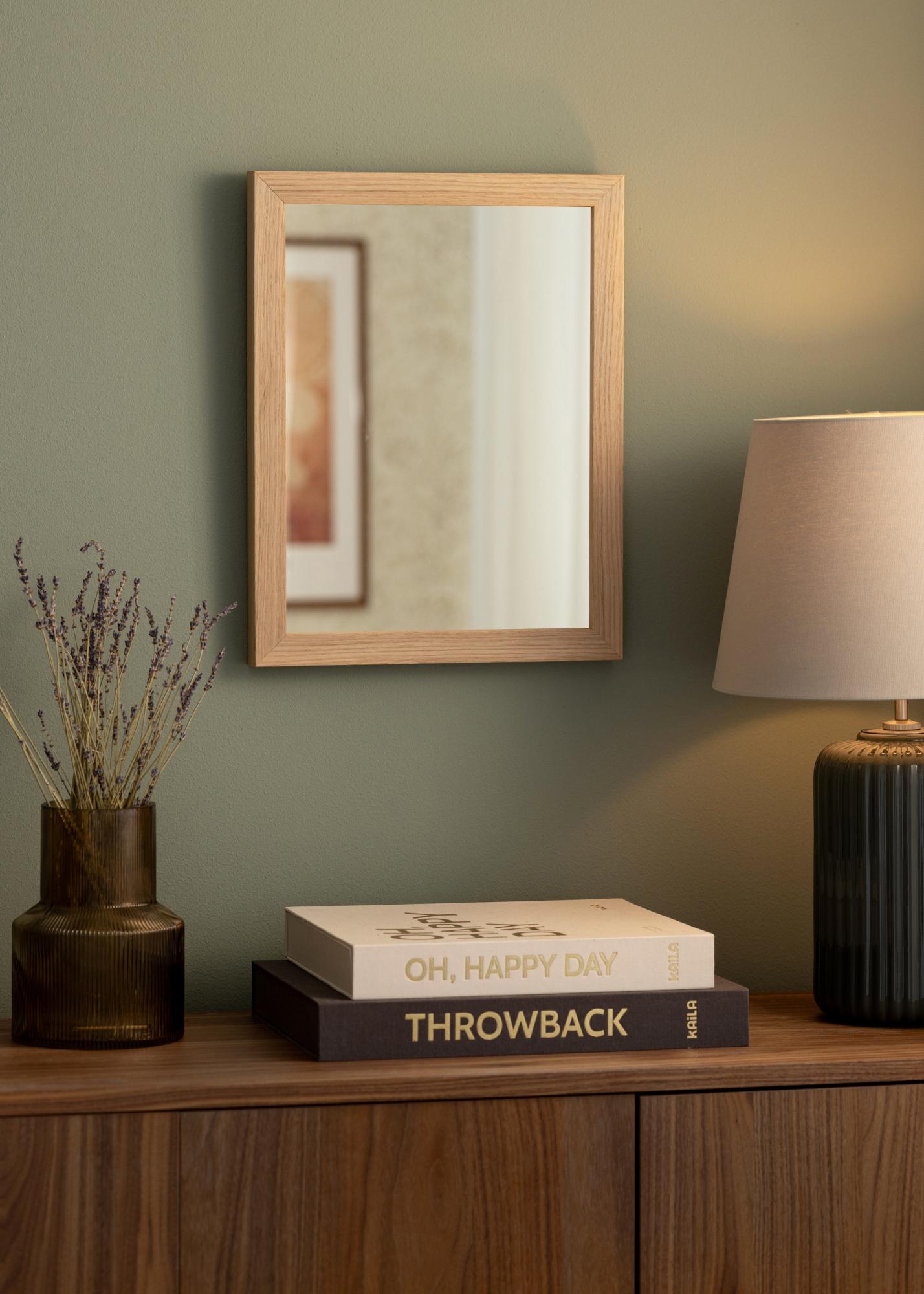 Kehys on valmistettu männystä, mikä tekee siitä sekä kestävän että kevyen. 32 mm syvyys antaa peilille vakaan rakenteen ja varmistaa sen turvallisen kiinnityksen seinälle. Tammiin lämpimän sävyn korostaa peilin ajattoman suunnittelun ja tekee siitä helpon yhdistää eri sisustustyyleihin.