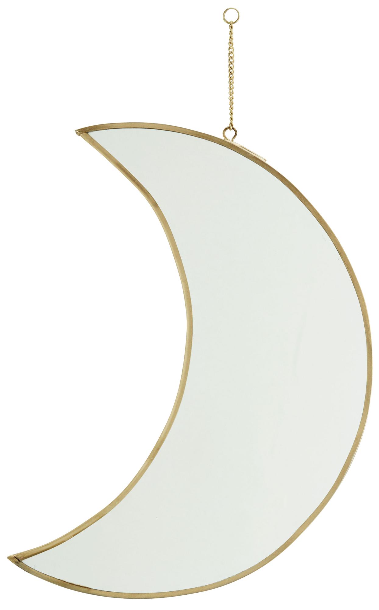 Anna tämän kauniin Madam Stoltzin peilin olla huomiota herättävä yksityiskohta kotisi sisustuksessa. Erityinen kuuta muistuttava muoto, joka yhdessä messinginvärisen kehyksen kanssa tekee tästä seinäpeilistä hyvin elegantin. Peili ripustetaan sirolla ketjulla, joka vahvistaa eleganttia tunnelmaa entisestään. Tämä peilimalli on saatavilla kahdessa eri koossa, joista tämän korkeus on 30 cm. Pieni koko tekee seinäpeilistä superhienon yhdistettäväksi muiden peilimallien kanssa.