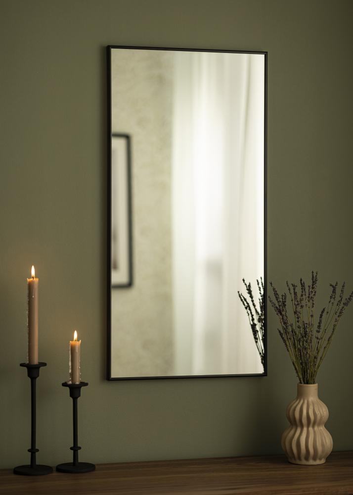 Yhdistä tämä monipuolinen peili sisustukseesi ja nauti sen toiminnallisesta kauneudesta joka päivä. Musta kehys luo vahvan kontrastin vaaleille seinille tai sulautuu saumattomasti tummempiin sävyihin, mikä tekee siitä turvallisen valinnan kaikille, jotka haluavat kotiinsa ajattoman designelementin.
