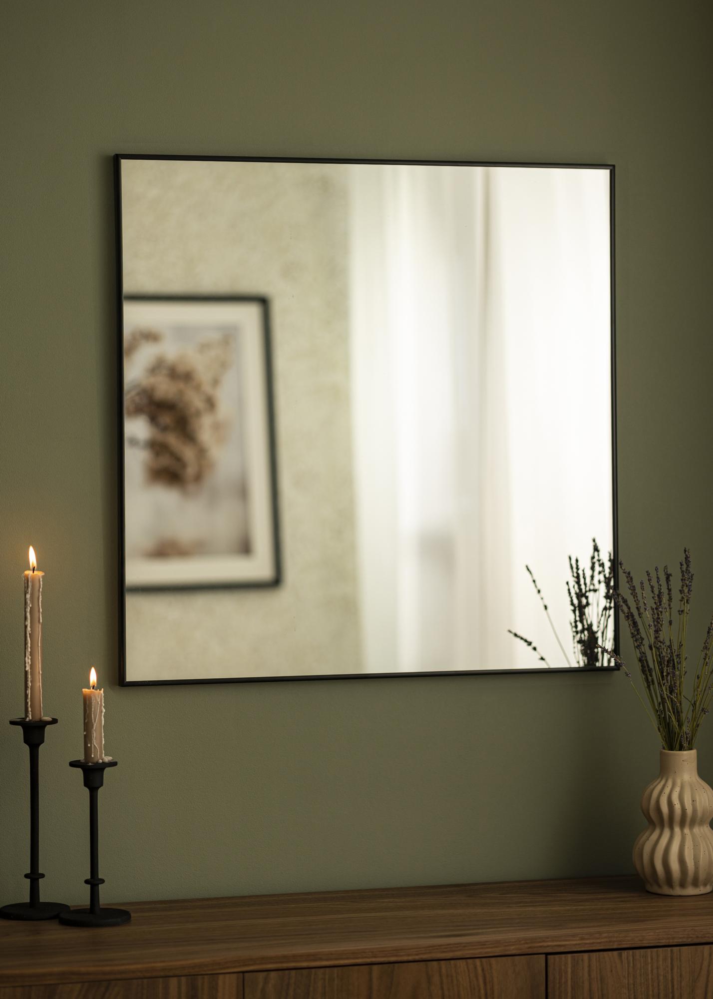 Löydä tyylikäs eleganssi 75x75 cm seisova peilillämme, täydellinen yhdistelmä toiminnallisuutta ja modernia muotoilua. Tämä siro, suorakaiteen muotoinen peili on elegantisti ympäröity mustalla alumiinikehyksellä, mikä antaa modernin ja hienostuneen tunnelman mihin tahansa huoneeseen. Sen tilava koko ja klassinen muoto tekevät siitä sekä käytännöllisen että koristeellisen osan kotiasi.