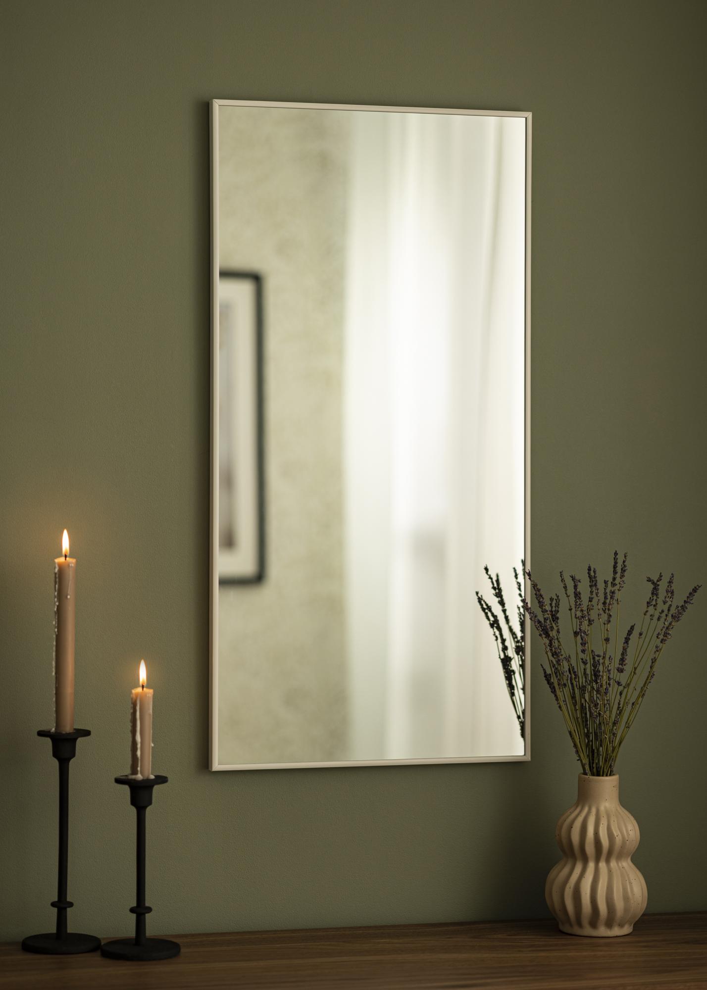 Tämä peili on suunniteltu ripustettavaksi pystysuoraan, mikä tekee siitä ihanteellisen koko ulkonäkösi tarkasteluun tai syvyyden lisäämiseen kapeille seinille. Sen suorakulmainen muoto sopii useimpiin sisustustyyleihin ja toimii yhtä hyvin makuuhuoneessa, kylpyhuoneessa kuin eteisessäkin.