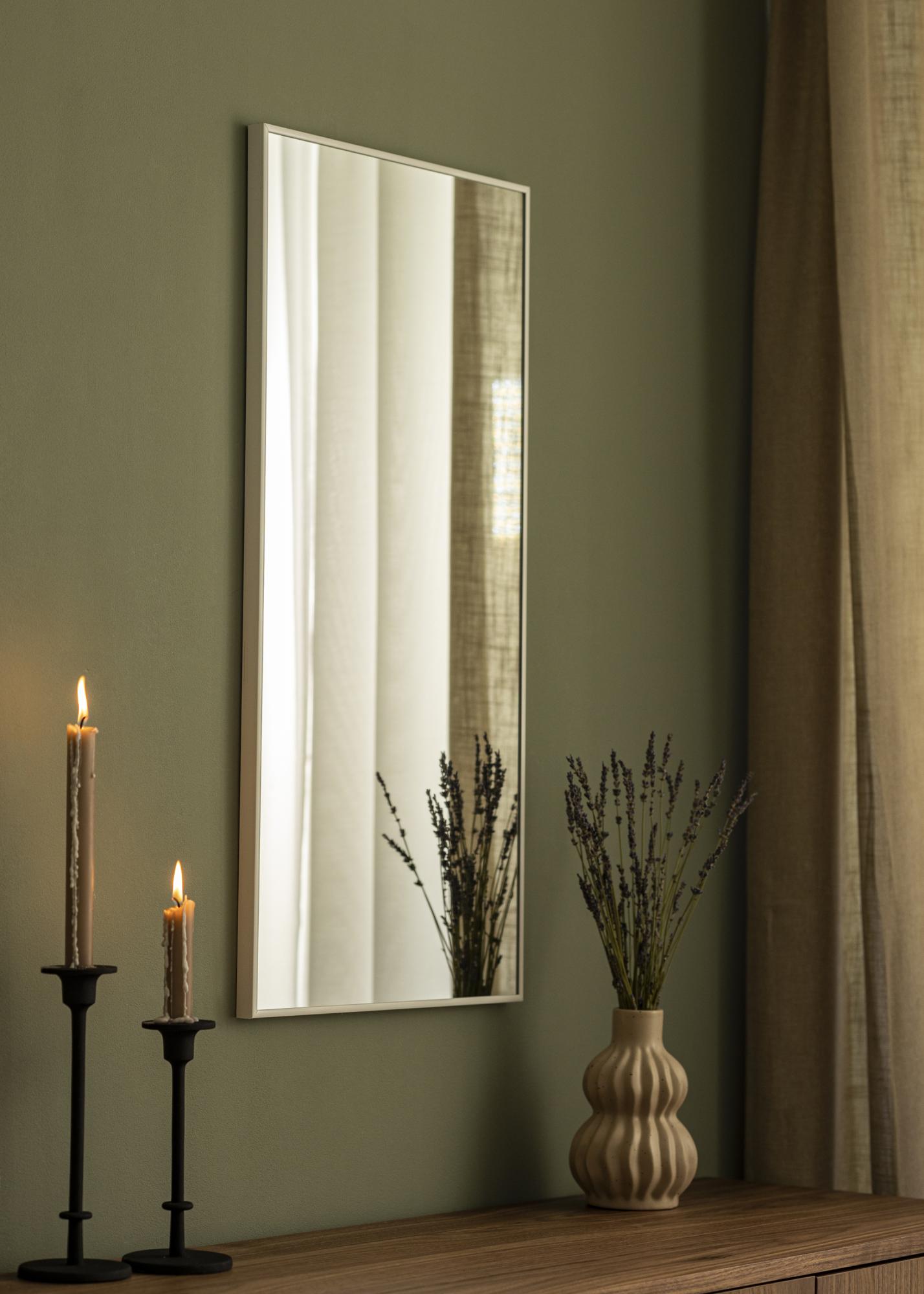 Luo kotiisi avaruuden ja valon tunne tällä tyylikkäällä peilillä. Sen mitat ovat 40,5x80,5 cm, mikä tekee siitä täydellisen luomaan suuremman huoneen illuusion tai toimimaan käytännöllisenä yksityiskohtana eteisessä. Valkoinen alumiinikehys antaa modernin kosketuksen samalla kun pitää designin puhtaana ja ajattomana.