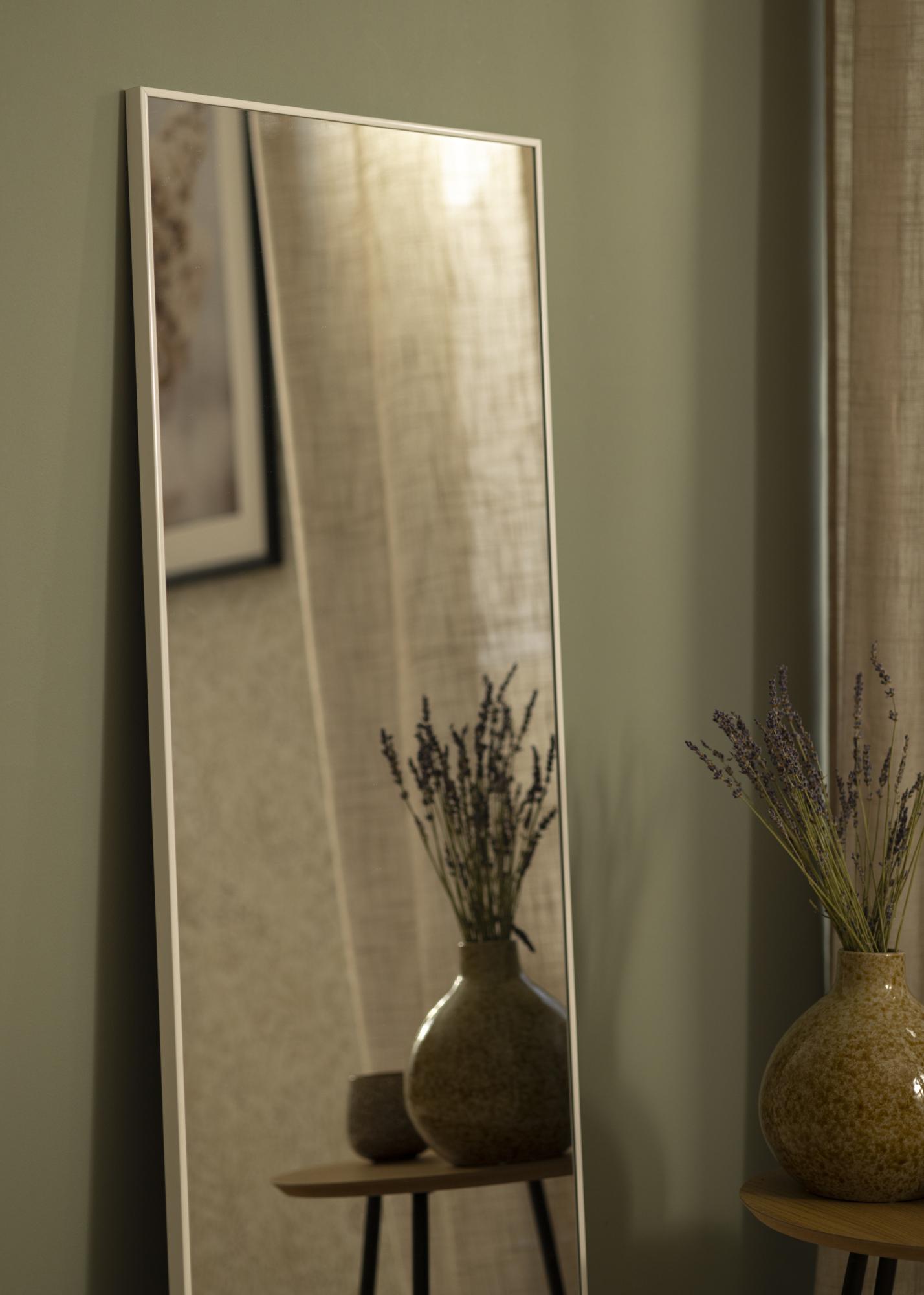 Tämä peili on suunniteltu ripustettavaksi pystysuunnassa, mikä tekee siitä ihanteellisen koko pituutesi ikuistamiseen. Se sopii erinomaisesti päivittäisiin rutiineihin tai viime hetken tarkistukseen ennen kuin astut ulos ovesta. Valkoinen kehys tuo raikkaan ja puhtaan ilmapiirin huoneeseen, ja sen minimalistinen muotoilu varmistaa, että se täydentää erilaisia sisustustyylejä.