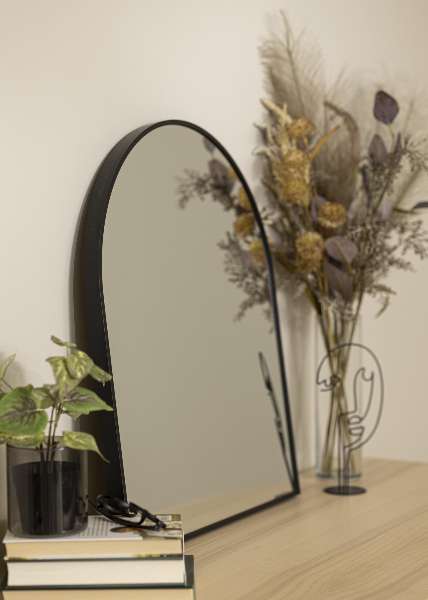 Tämä on loistava valinta sinulle, joka etsit peiliä, jossa on moderni muotoilu, trendikäs holvimuoto ja tyylikäs musta kehys. Peilin kehys on 28 mm syvä ja valmistettu metallista. Tämä peili on koristeellinen yksityiskohta eteisessä tai olohuoneessa, jossa se heijastaa kauniisti valoa kaikista huoneen valonlähteistä. Peilin vankan materiaalin ansiosta se sopii hyvin myös kylpyhuoneeseen.