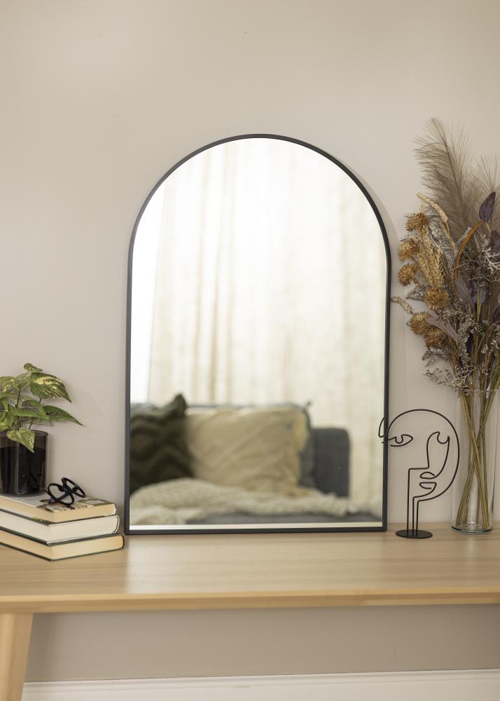 Tämä on loistava valinta sinulle, joka etsit peiliä, jossa on moderni muotoilu, trendikäs holvimuoto ja tyylikäs musta kehys. Peilin kehys on 28 mm syvä ja valmistettu metallista. Tämä peili on koristeellinen yksityiskohta eteisessä tai olohuoneessa, jossa se heijastaa kauniisti valoa kaikista huoneen valonlähteistä. Peilin vankan materiaalin ansiosta se sopii hyvin myös kylpyhuoneeseen.