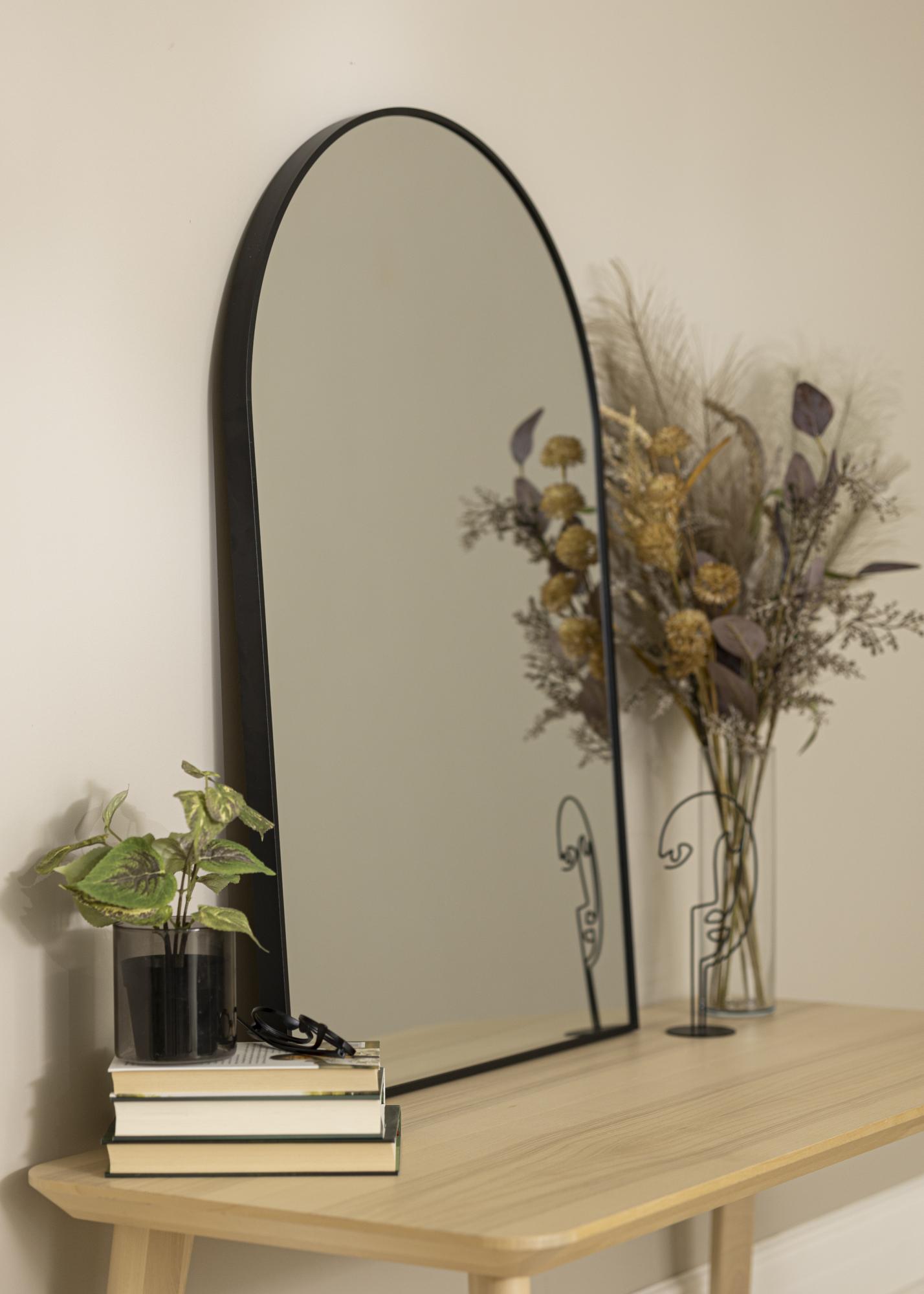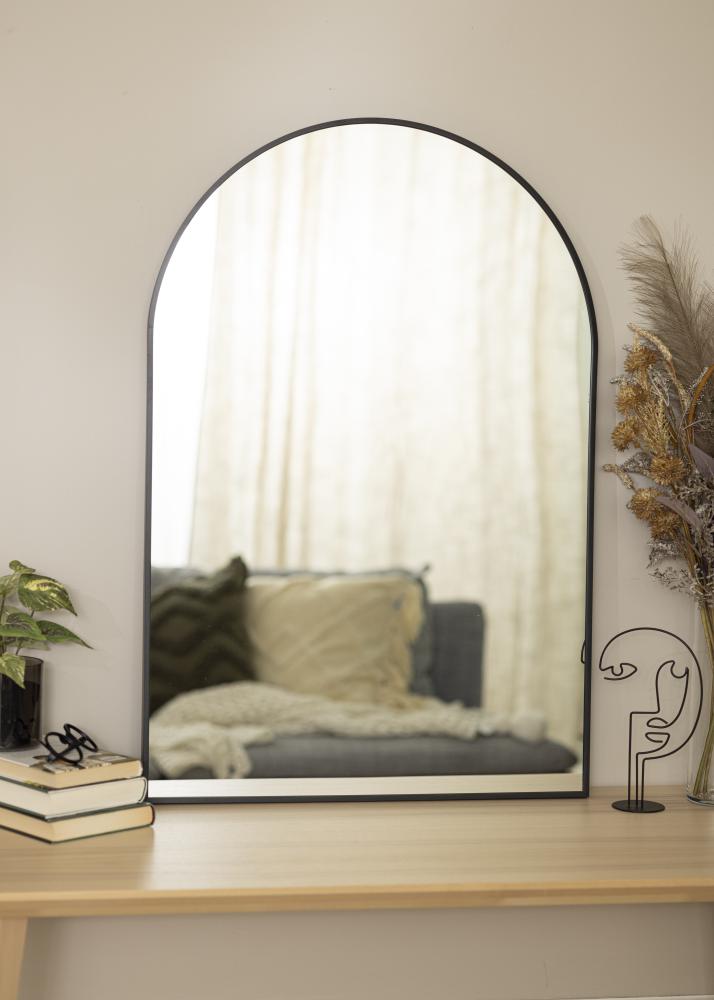 Tämä on loistava valinta sinulle, joka etsit peiliä, jossa on moderni muotoilu, trendikäs holvimuoto ja tyylikäs musta kehys. Peilin kehys on 28 mm syvä ja valmistettu metallista. Tämä peili on koristeellinen yksityiskohta eteisessä tai olohuoneessa, jossa se heijastaa kauniisti valoa kaikista huoneen valonlähteistä. Peilin vankan materiaalin ansiosta se sopii hyvin myös kylpyhuoneeseen.