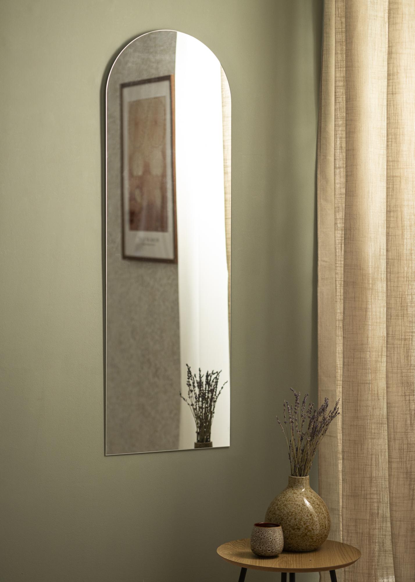 Se on tosi hyvännäköinen myös jonkin huonekalun päällä, esimerkiksi sivupöydällä tai senkin päällä - näin luot dynaamista kontrastia sisustukseesi. Seinäpeilin kehyksetön ja holvimainen muoto luo sille minimalistisen ulkomuodon. Ohut peililasi lisää peilin eleganssia.