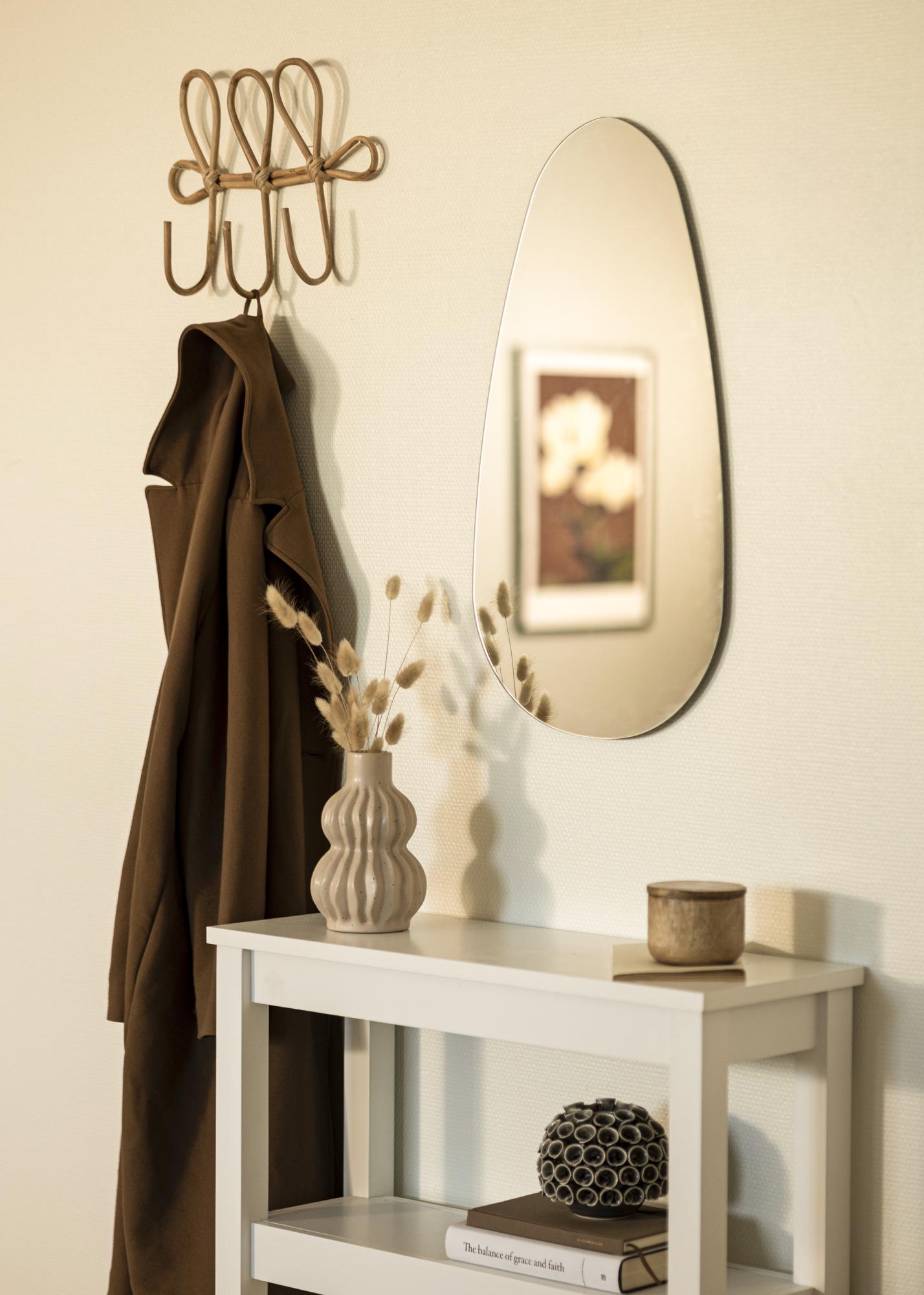 Tämä peili ei ole vain käytännöllinen yksityiskohta vaan myös koristeellinen esine joka täydentää sisustustasi. Sen elegantti, dropinmuotoinen siluetti levittyy pehmeästi ylöspäin, luoden tunteen rauhasta ja kauneudesta huoneeseen. Se on suunniteltu ripustettavaksi sekä pysty- että vaakasuunnassa, antaen sinulle joustavuuden mukauttaa se tilaasi ja henkilökohtaiseen tyyliisi.