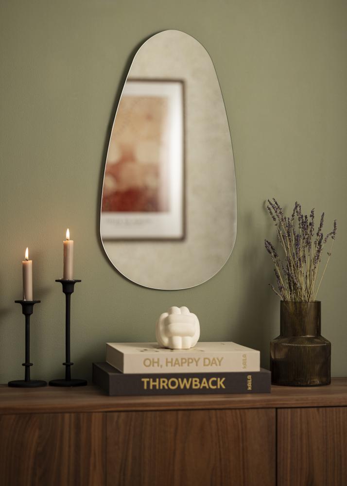 Tutustu ainutlaatuiseen viehätykseen droppimuotoisen peilimme kanssa, ajattomaan lisävarusteeseen joka muuttaa minkä tahansa tilan tyylikkääksi keitaaksi. Mittojensa 35x65 cm ansiosta tämä peili on täydellisesti mitoitettu sopimaan moniin erilaisiin tiloihin, eteisestä makuuhuoneeseen.