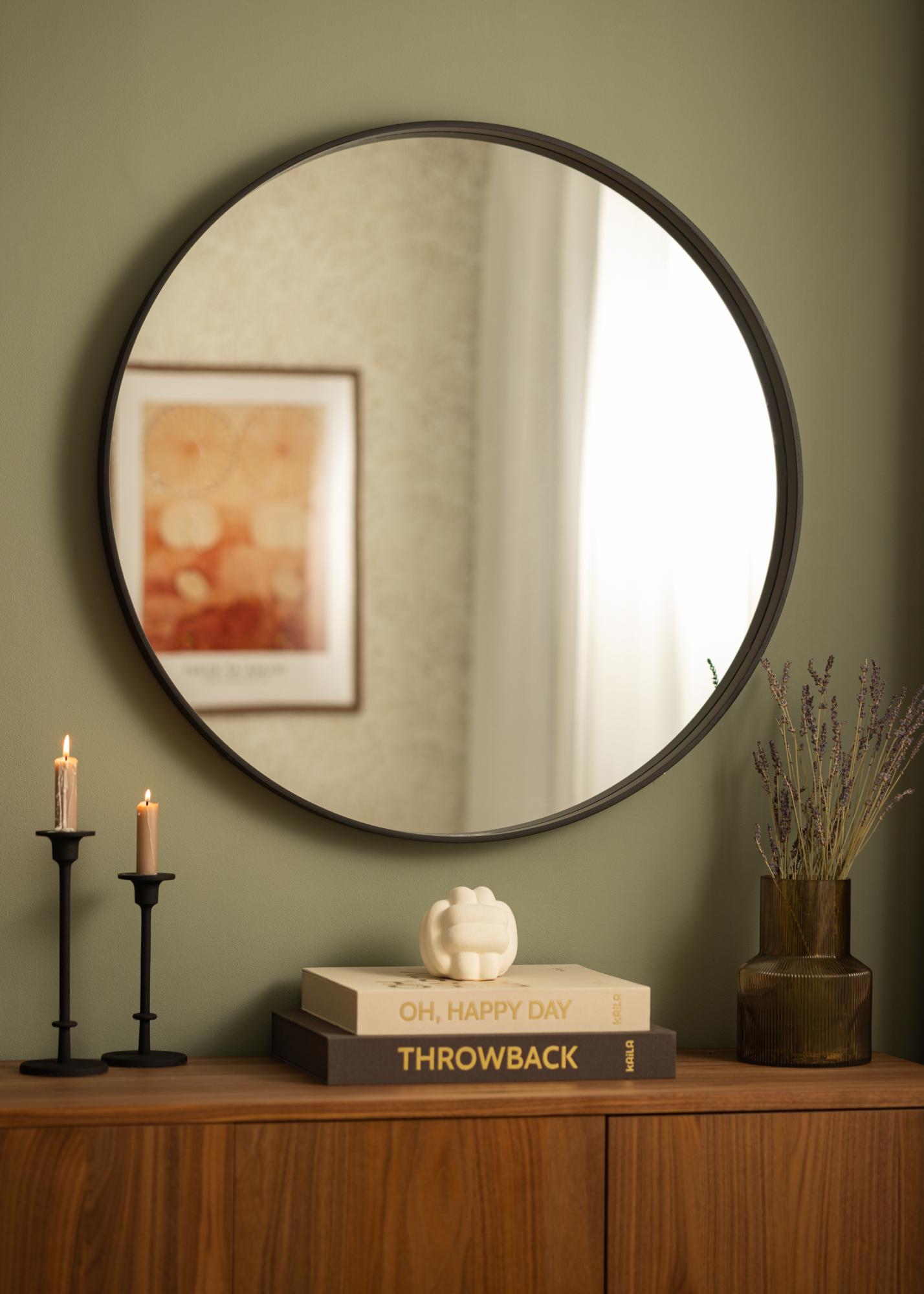 Löydä elegantti yksinkertaisuus pyöreässä peilissämme, ajaton sisustuselementti, joka sopii täydellisesti jokaiseen kotiin. Tämä tyylikäs pyöreä peili erottuu mustalla kehyksellään, joka antaa raikkaan ja modernin vaikutelman huoneeseen. Minimalistinen muotoilu tekee siitä sopivan erilaisiin sisustustyyleihin, skandinaavisesta teolliseen.