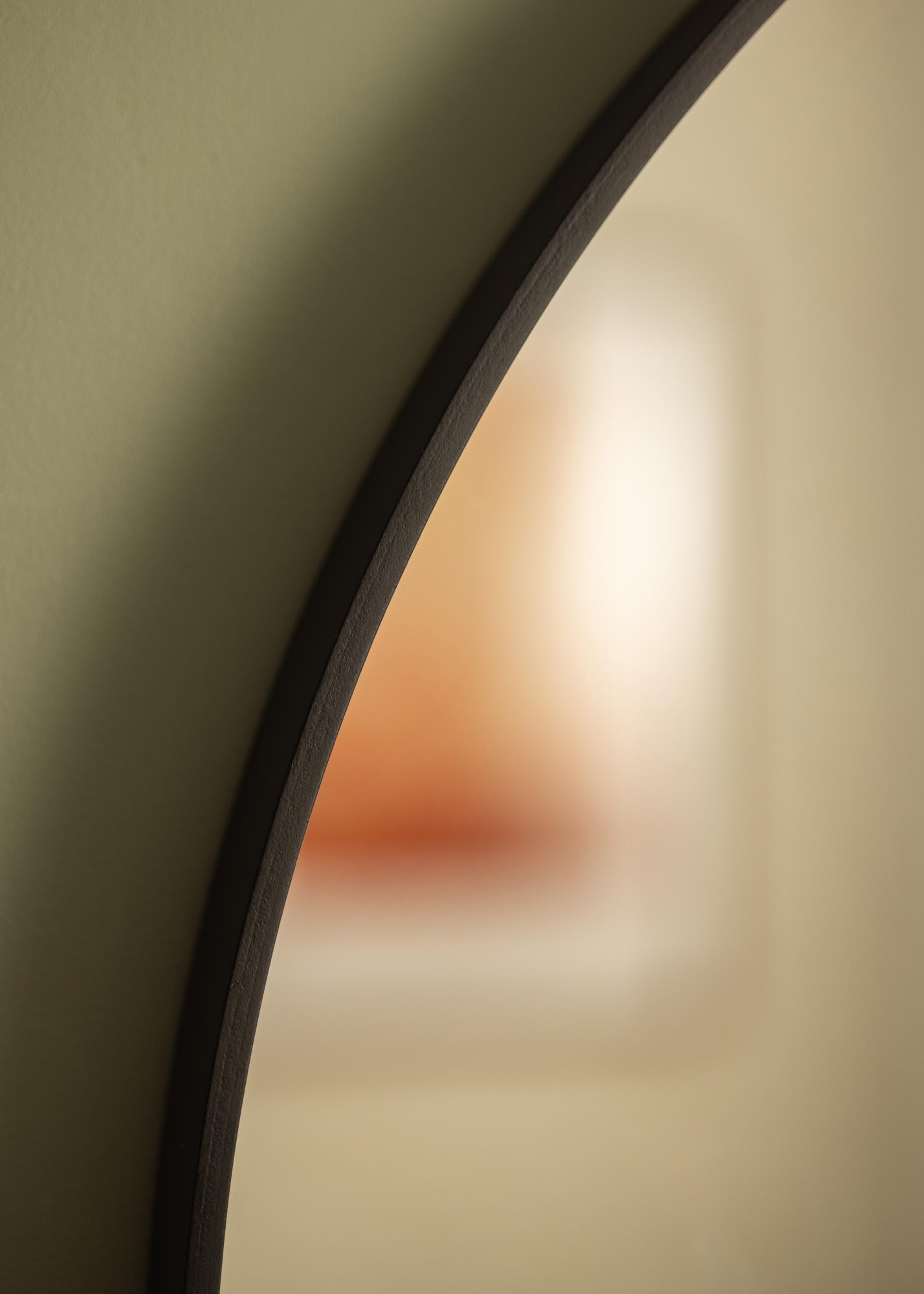 Tällä silmiinpistävällä mustalla kehyksellä varustettu peili on huomattava piste huoneessa, mutta se säilyttää keveyden ja avoimuuden tunteen. Olitpa sitten asettamassa sitä eteiseen, olohuoneeseen tai makuuhuoneeseen, tämä peili luo avaruuden tunteen ja heijastaa persoonallista tyyliäsi.