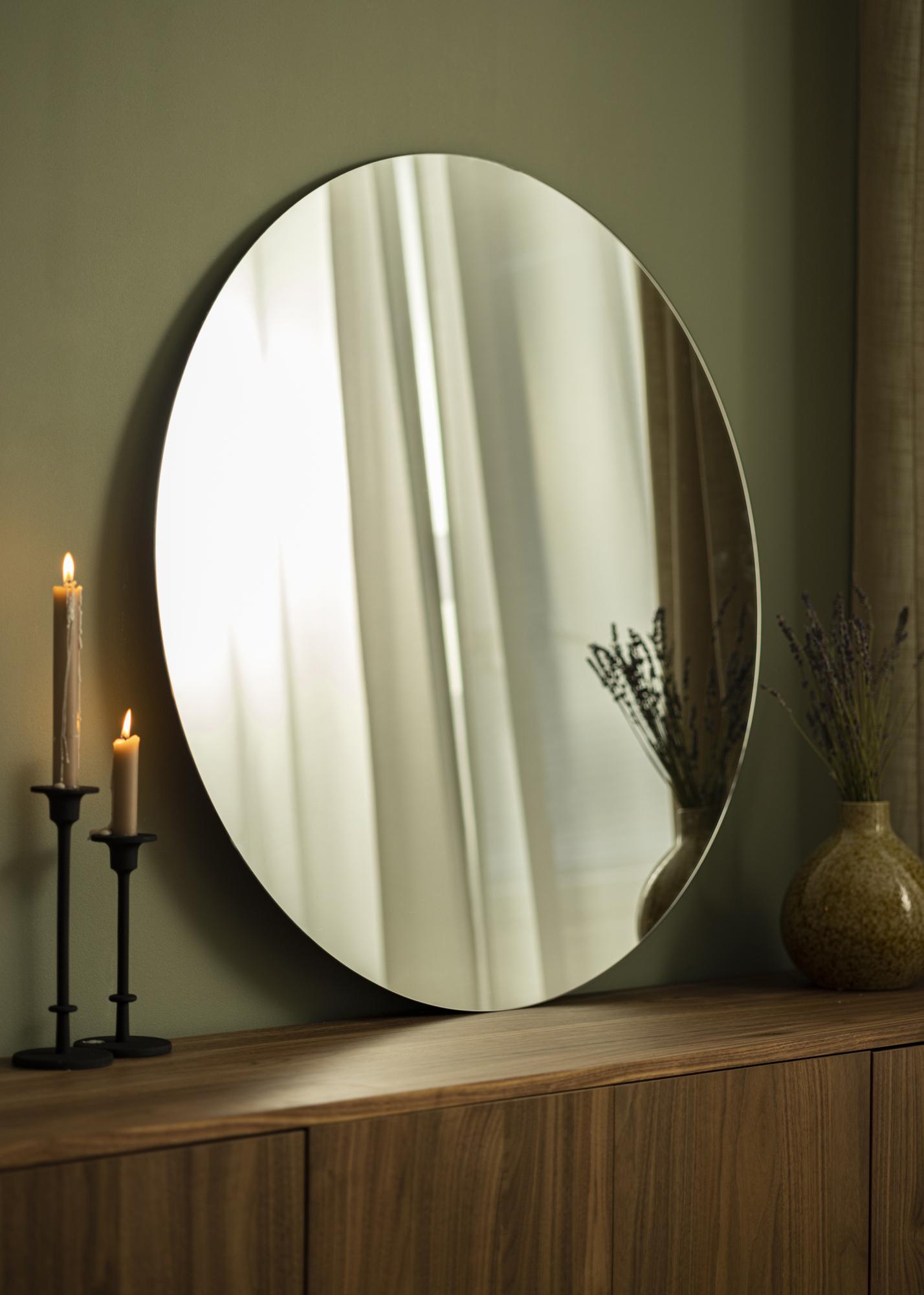 Löydä elegantti yksinkertaisuus pyöreästä peilistämme, täydellinen lisäys tilan ja valon tunteen luomiseksi kotiisi. Halkaisijaltaan 90 cm, tämä peili on upea yksityiskohta seinällä, samalla tarpeeksi huomaamaton sulautumaan erilaisiin sisustustyyleihin. Pyöreä muoto luo pehmeän kontrastin tilan muihin linjoihin ja luo harmonisen vaikutelman sisustuksessasi.
