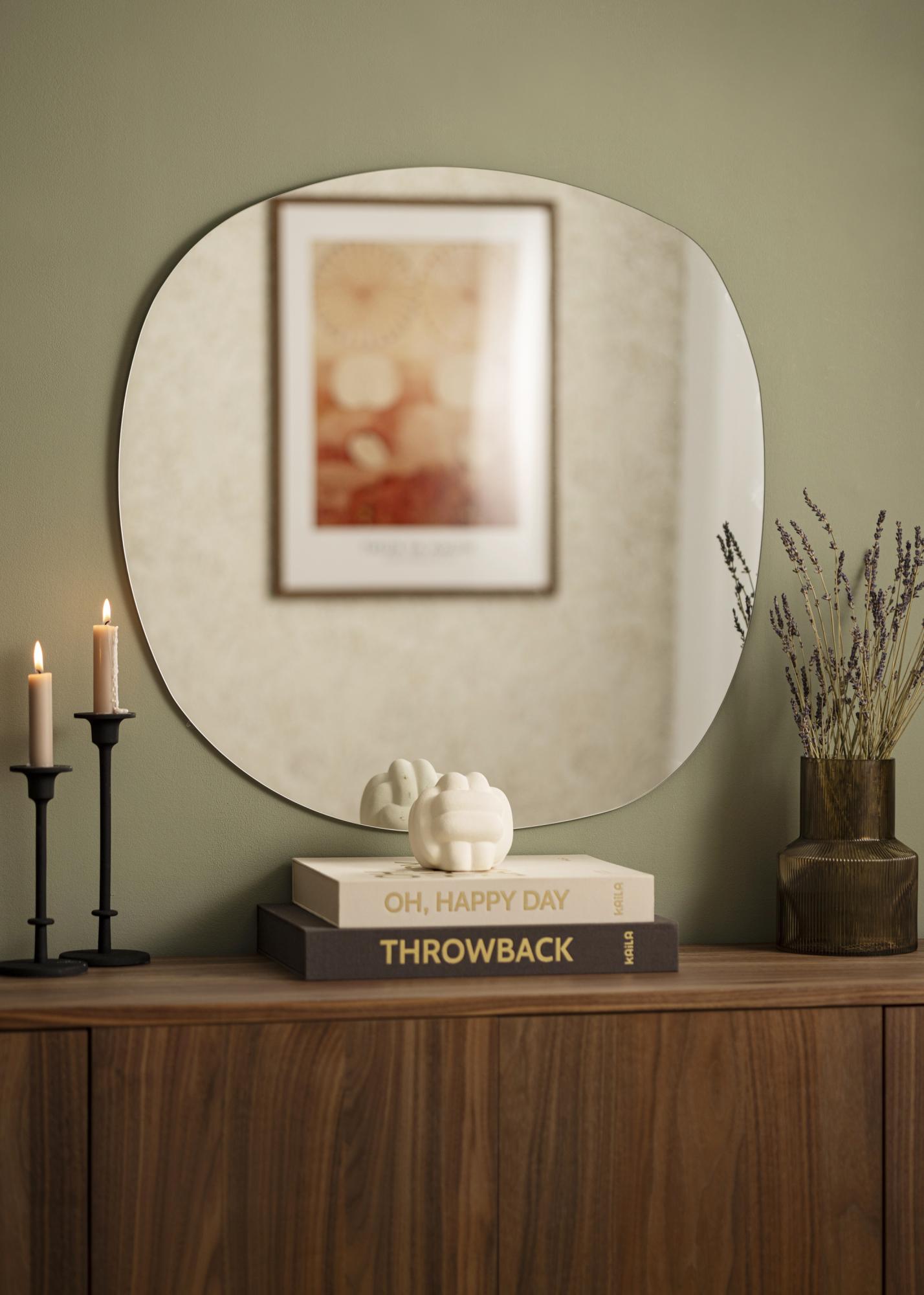 Löydä hienostunut yksinkertaisuus modernissa peilissämme, täydellinen lisäys tilan ja valon tunteeseen jokaiseen huoneeseen. 70x70 cm:n anteliailla mitoillaan tämä peili tarjoaa käytännöllisen ja koristeellisen toiminnon kodissasi. Peilin pyöreä, neliskulmainen muoto pyöristetyillä kulmillaan antaa modernin ja tyylikkään ilmeen.