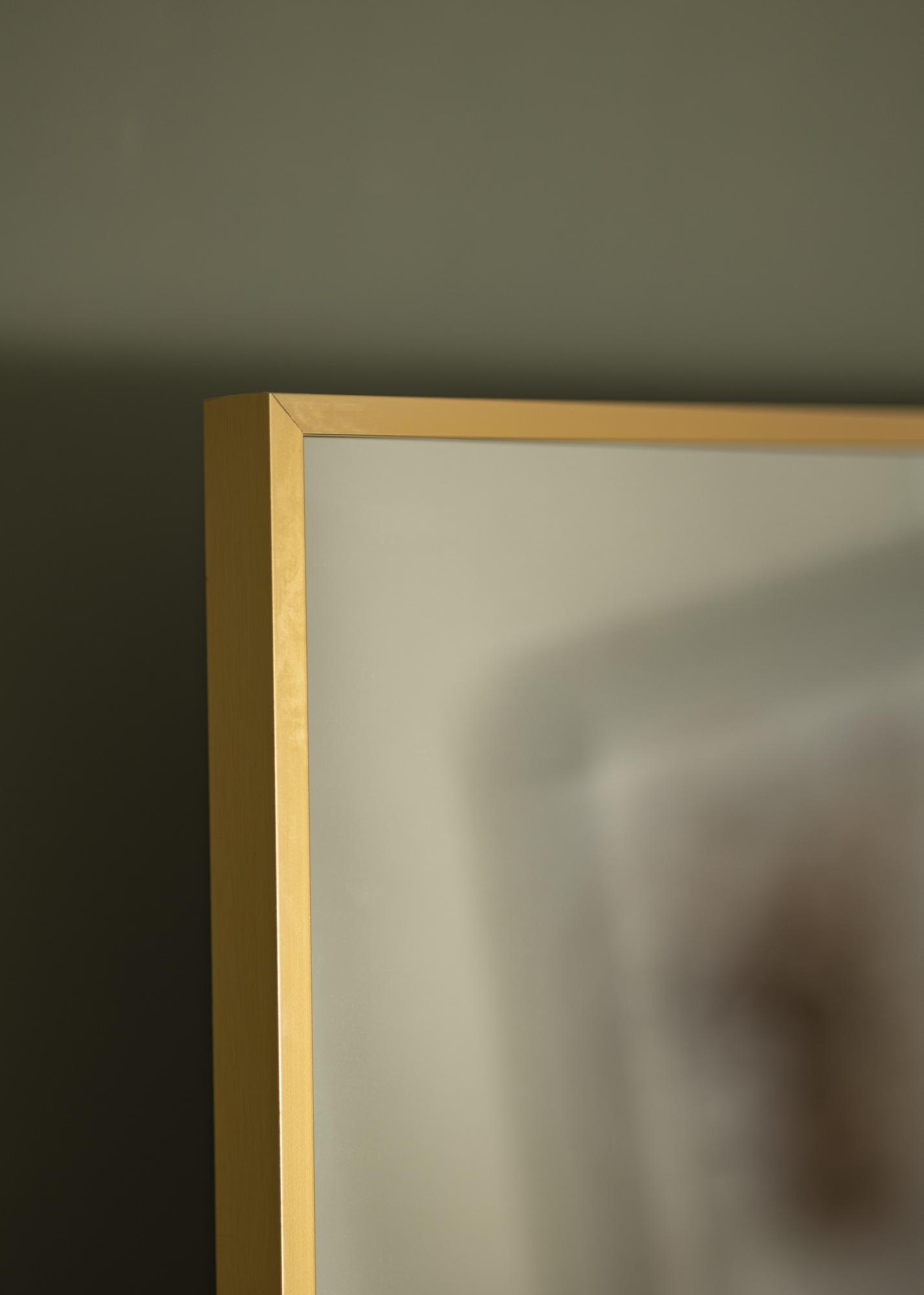 Tämä peili ei ole vain käytännöllinen, vaan myös koristeellinen yksityiskohta, joka nostaa sisustuksesi uusiin korkeuksiin. Ohut, kultaisella sävyllä varustettu alumiinikehys ympäröi peililasia ja antaa hienostuneen kosketuksen, joka sopii sekä moderniin että perinteiseen ympäristöön.