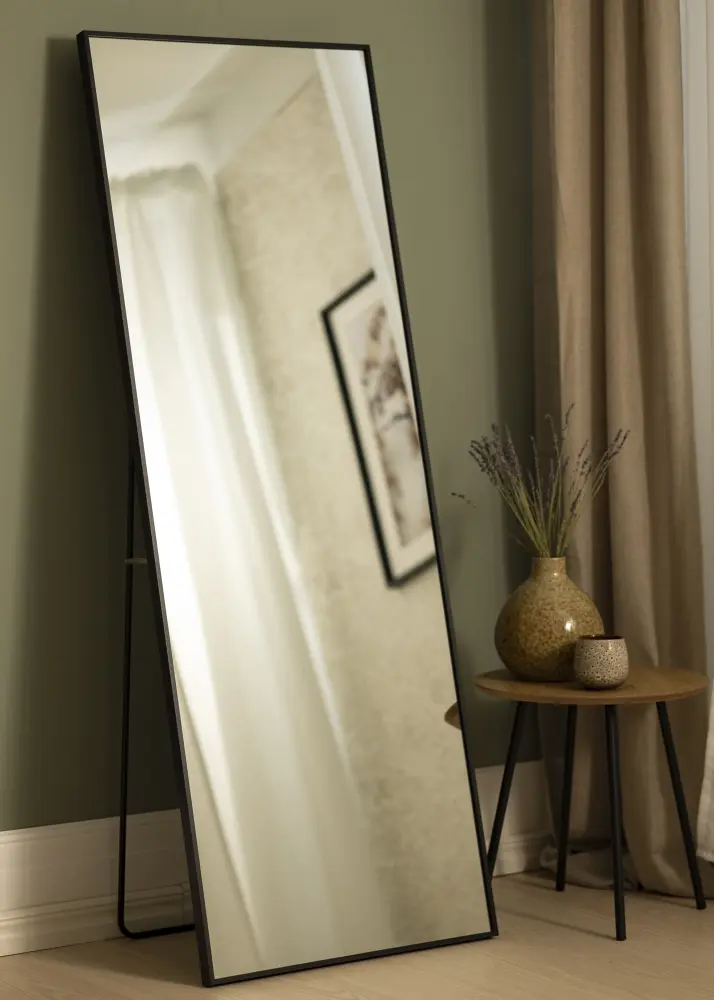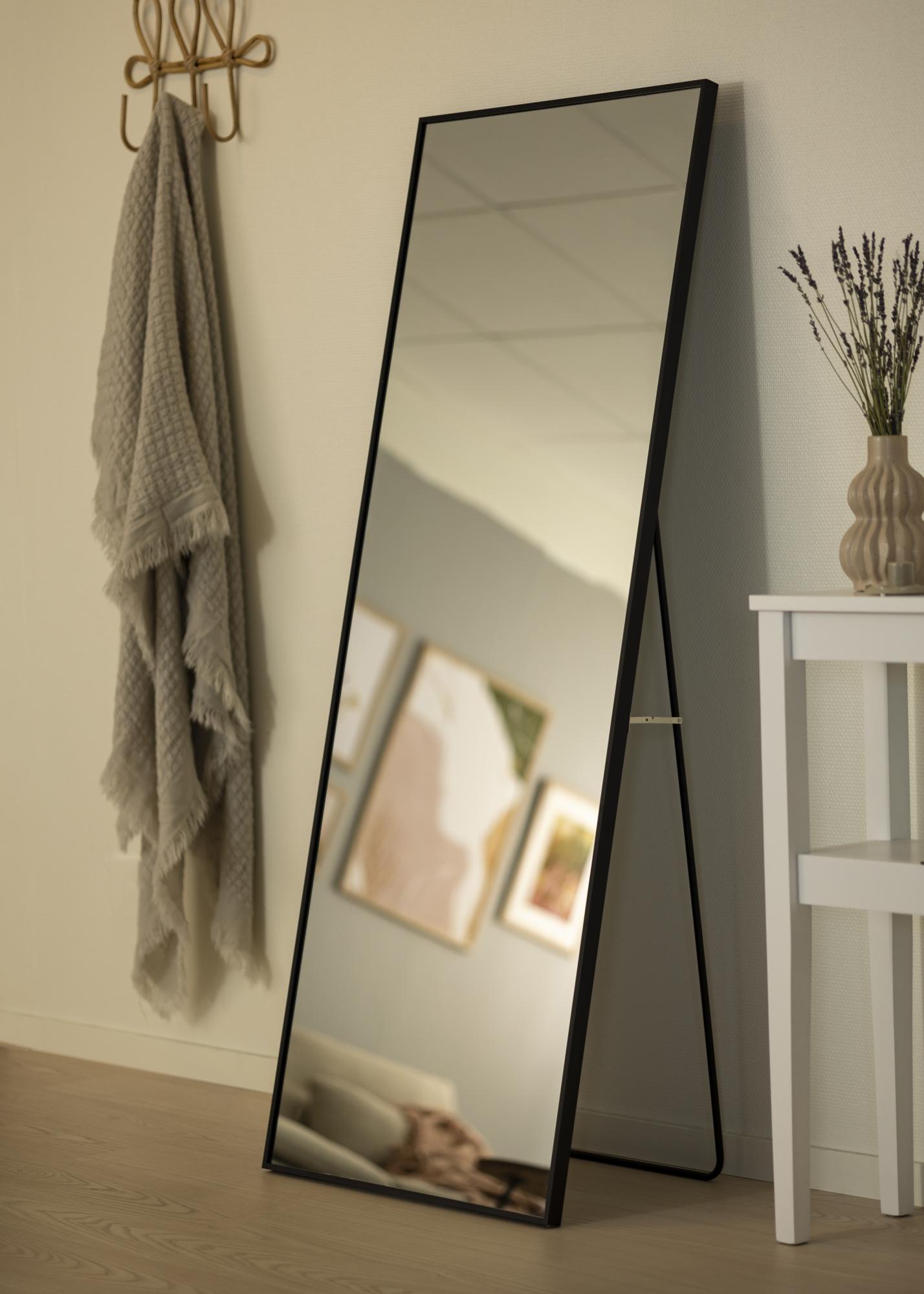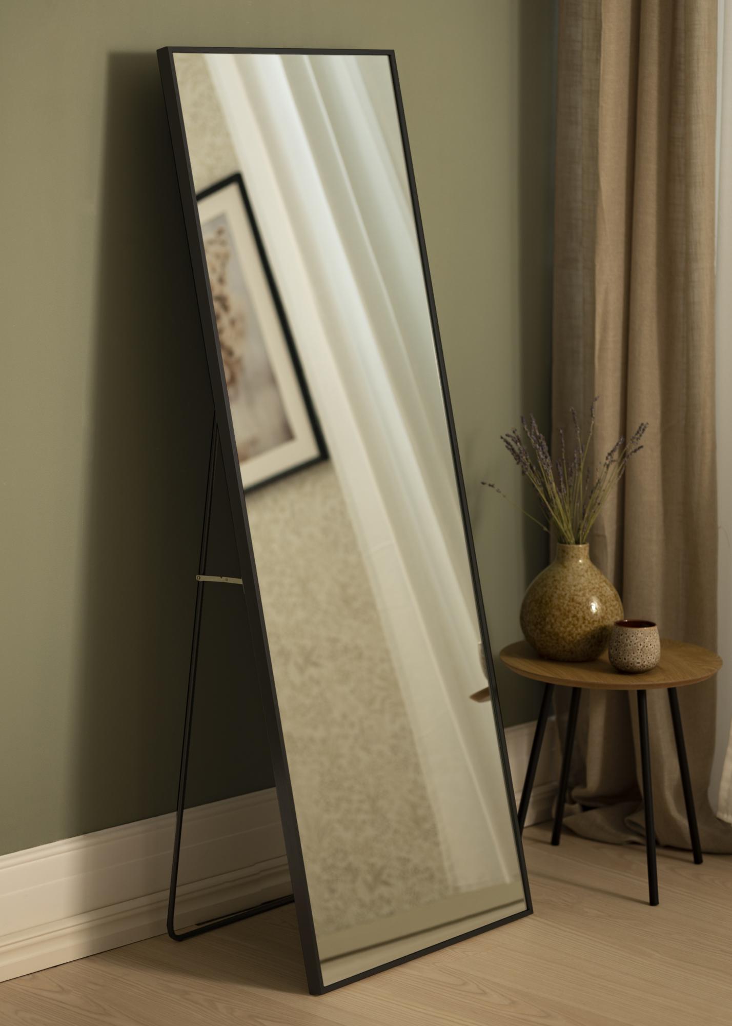 Löydä tyylikäs ja käytännöllinen muotoilu lattiasinemamme peilillä. Sen runsaat mittat 55x150 cm tekevät tästä peilistä upean yksityiskohdan kotiisi. Suorakaiteen muotoinen peili täydentyy hienostuneella, ohkaisella mustalla alumiinikehyksellä, joka antaa modernin ja tyylikkään ilmeen mihin tahansa huoneeseen.