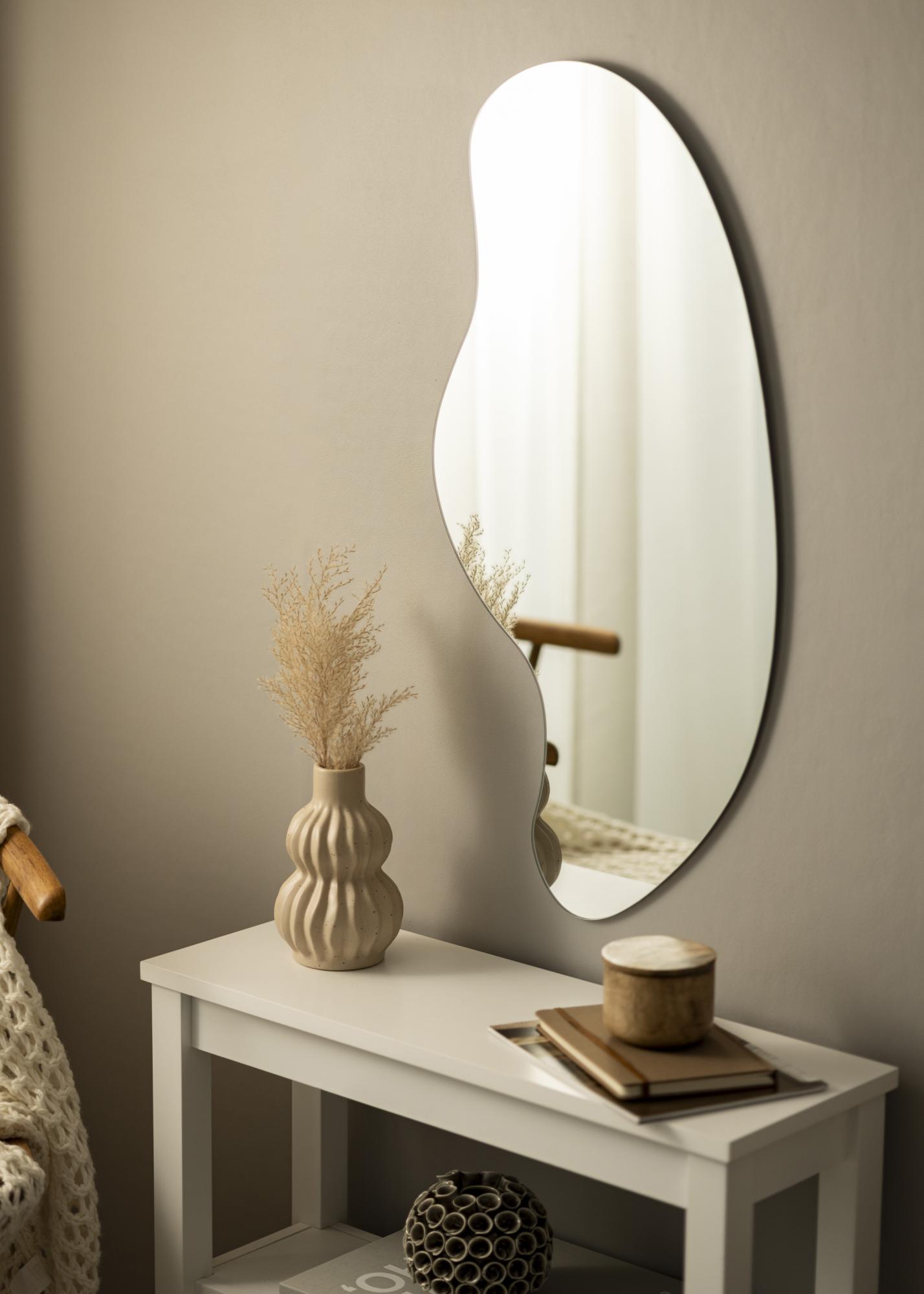 Wavy Cloud on peili, jossa yhdistyy ainutlaatuinen design ja suuri eleganssi - täydellinen sinulle, joka etsit yksilöllistä sisustusyksityiskohtaa. Peilin erityinen muotoilu, jossa yksi sivu on klassisesti pyöristetty ja toinen sivu aallonmuotoinen, muodostaa tyylikkään kokonaisuuden. Peilissä ei ole kehystä ja siinä on vain 4 mm ohut peililasi, joka lisää vielä tyylikkyyden tuntua. Tämän seinäpeilin koko on 40x80 cm.