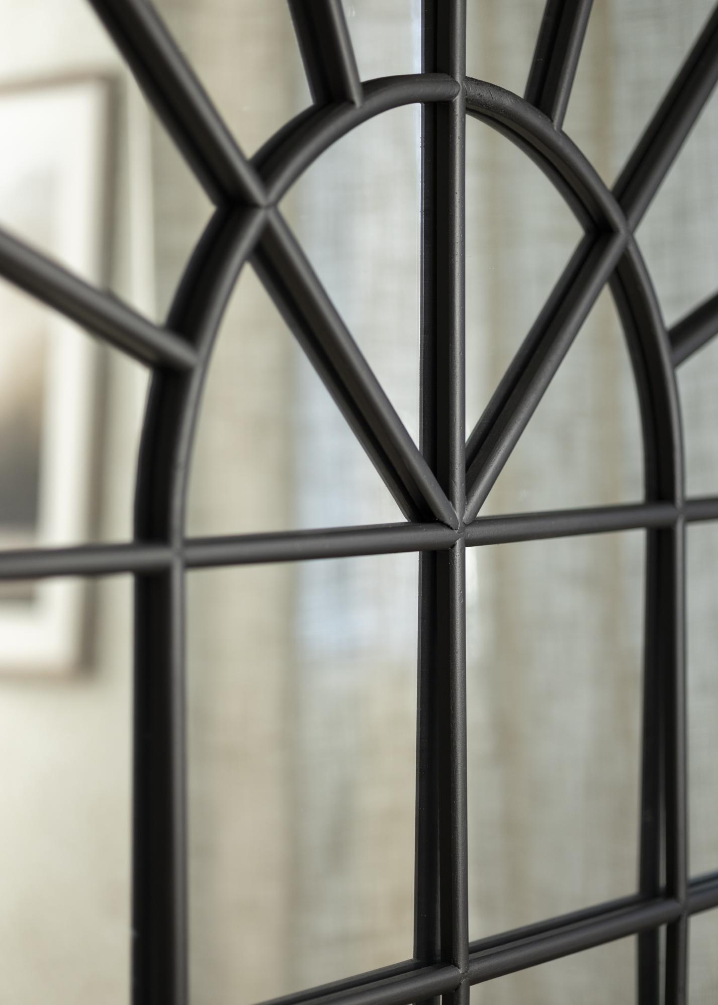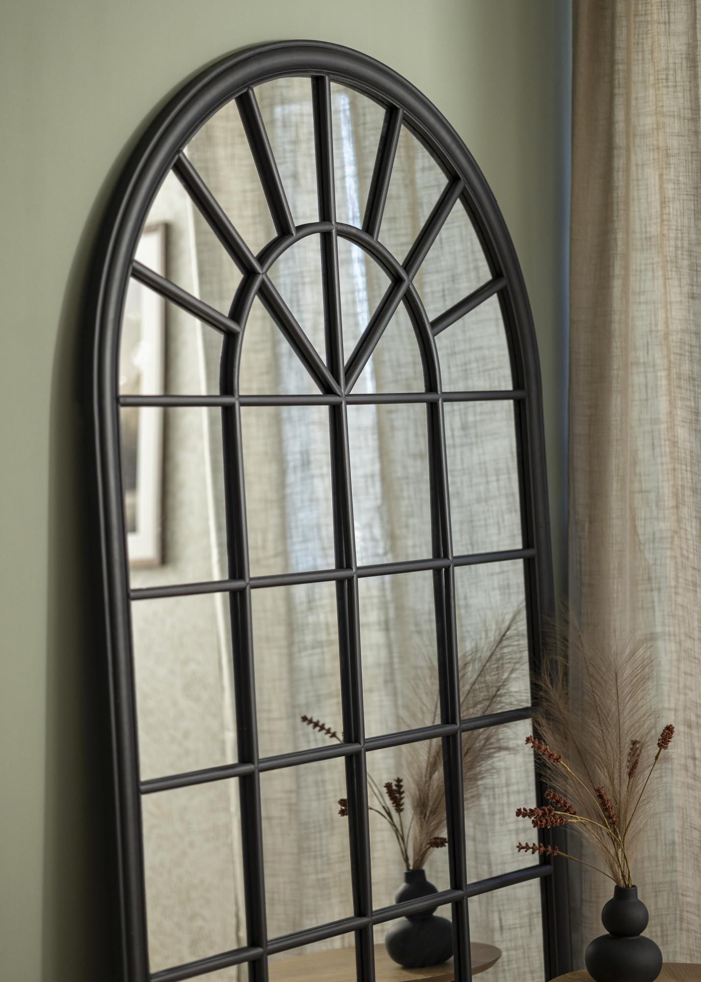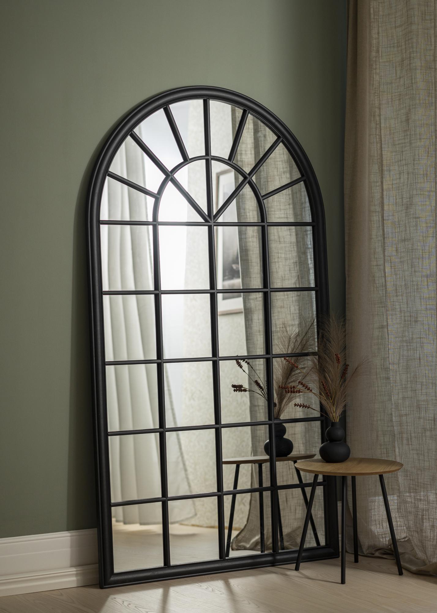 Löydä ainutlaatuinen peilin majesteettinen läsnäolo, todellinen katseenvangitsija joka huoneessa. Suurella koollaan 103x180 cm, tämä peili tarjoaa paitsi käytännöllisen toiminnon myös sisustuksen osan. Sen vaikuttava puoliympyrämuotoinen yläkaari täydentyy lumoavalla ikkunan kaltaisella ruudukolla, joka antaa sille erottuvan teollisen esteettisyyden.