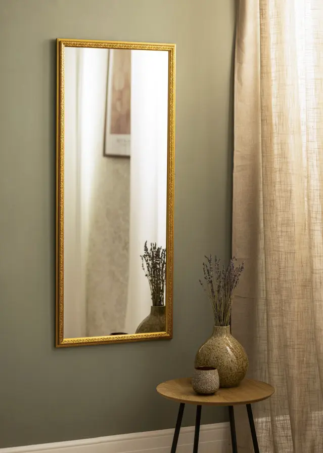 Kulta- ja hopeapeilejämme ostetaan usein useammissa kappaleissa, samanlaisilla kehyksillä. Lopputuloksena tästä on hieno ja yhtenäinen seinä. Voidessasi räätälöidä sekä peilejä että kehyksiä, meiltä löydät helposti mallit, jotka yhdistyvät upeasti toisiinsa.
