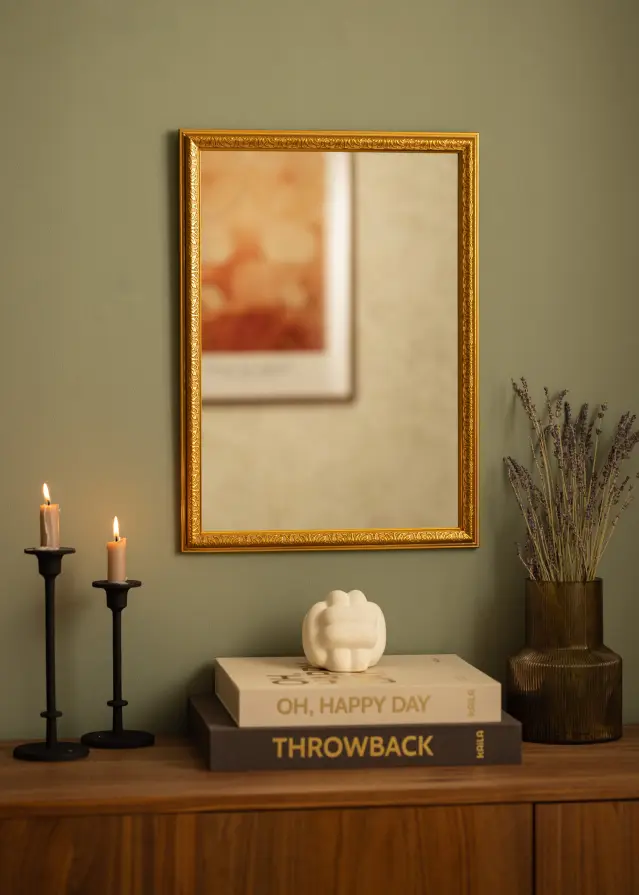 Kulta- ja hopeapeilejämme ostetaan usein useammissa kappaleissa, samanlaisilla kehyksillä. Lopputuloksena tästä on hieno ja yhtenäinen seinä. Voidessasi räätälöidä sekä peilejä että kehyksiä, meiltä löydät helposti mallit, jotka yhdistyvät upeasti toisiinsa.