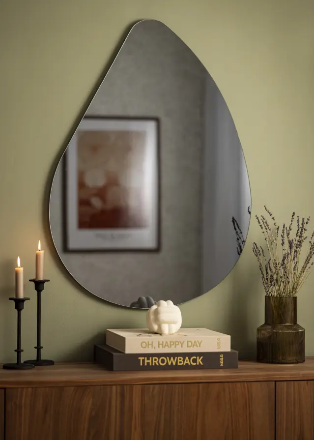 Erikoisen muotoinen seinäpeili toimii hyvin koristeena esimerkiksi sohvan tai sivupöydän yläpuolella. Se sopii myös paikkoihin, joissa toiminnallisuus on yhtä tärkeää kuin ulkonäkö – esimerkiksi eteiseen, jotta voit tarkistaa ulkonäkösi ennen uloslähtöä. Jos sinulla on suuri seinäpinta, on näyttävää koristella se isolla peilillä tai yhdistää useita pienempiä peilejä peiliseinäksi.