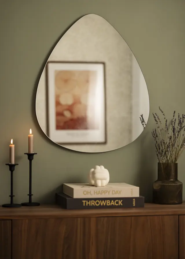 Epäsymmetrisellä peilillä on yleensä hyvin moderni ja trendikäs ulkonäkö. Tämän vuoksi se sopii luonnollisesti nykyaikaisiin koteihin. Epäsäännöllinen muoto tuo dynamiikkaa ja rikkoo tyylikkäästi perinteisiä linjoja ja muotoja. Uniikin muotoinen seinäpeili sopii myös sinulle, joka pidät rohkeista ja leikkisistä sisustusratkaisuista. Jos tyylisi on perinteisempi ja pelkistetympi, suosittelemme pisaran- tai kaarenmuotoista peiliä – niissä on paljon persoonallisuutta ilman, että ne erottuvat liikaa.
