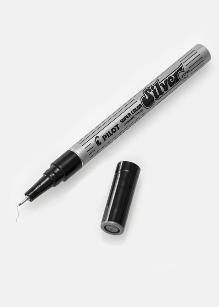 Käynnistä kehysvalitsin »Pilot Hopeanvärinen on koristekynä kiiltävällä kirjoittamisjäljellä! Kynässä on erittäin ohut kärki 0,5 mm.