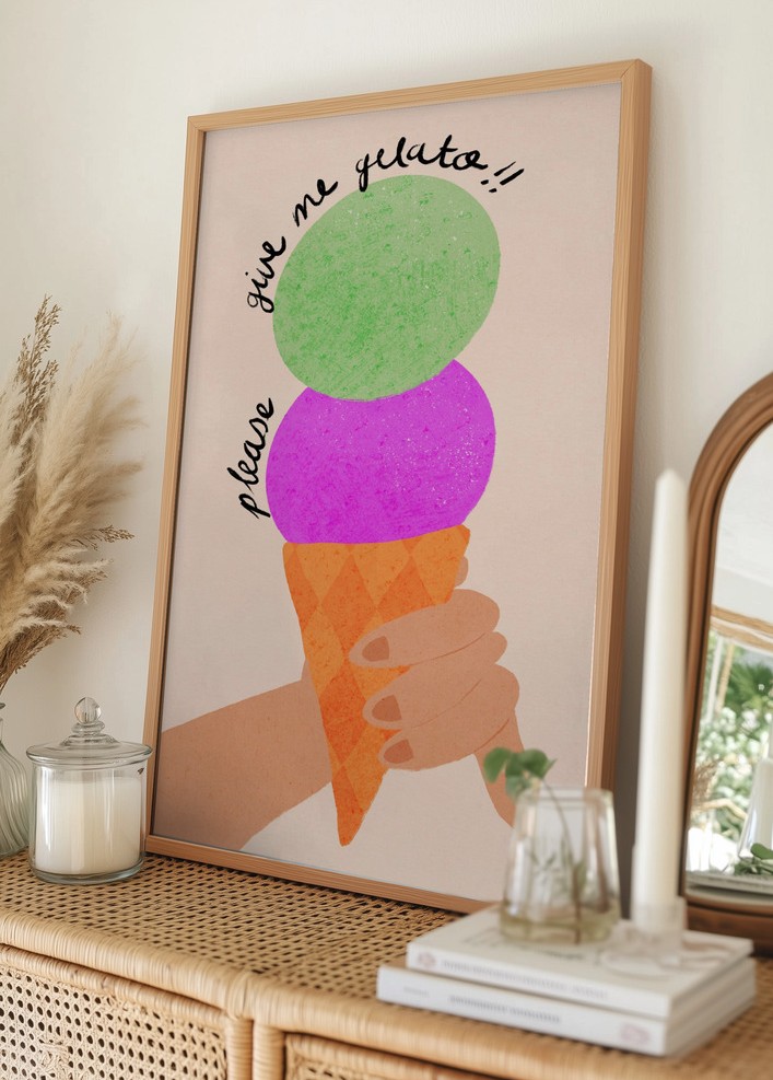 Please Give Me Gelato Ice Cream Typography Blueberry and Mint Juliste