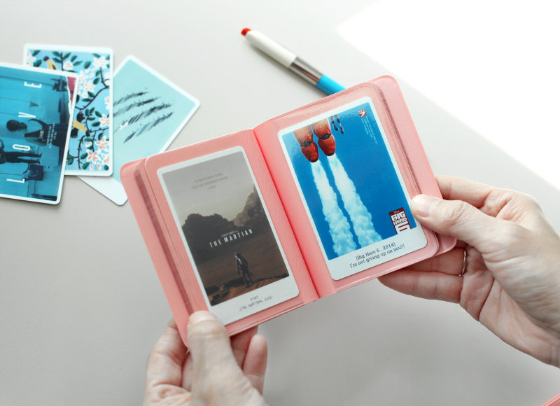 Hieno, modernin trendikkäästi suunniteltu minialbumi upeissa väreissä, sopii erityisesti Instax/Polaroid kuville. Albumissa on tilaa 28 kuvalle koossa 5x7,6 cm, jotka on helppo laittaa käteviin valokuvataskuihin. Albumin kannessa on myös paikka omalle kuvalle.