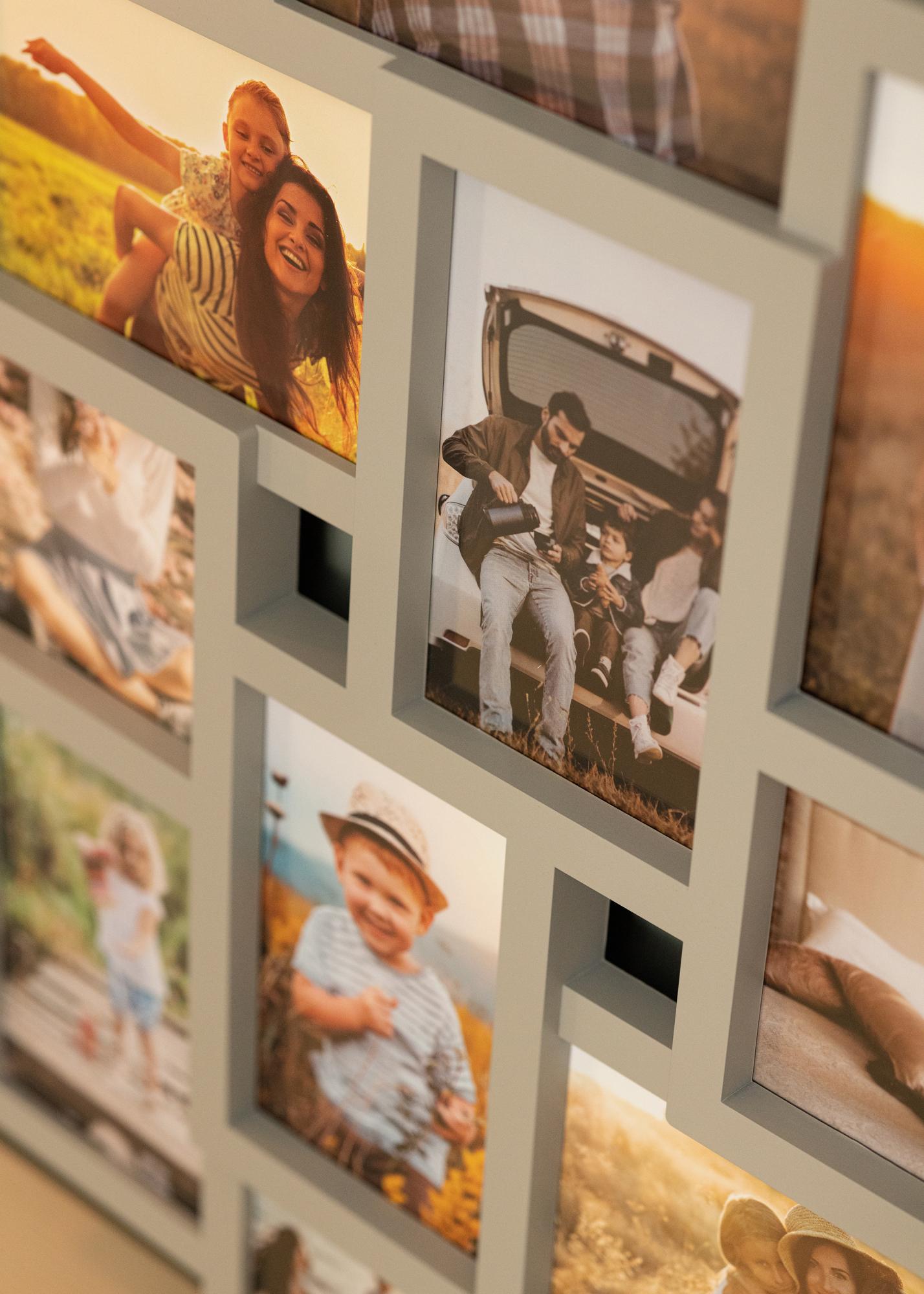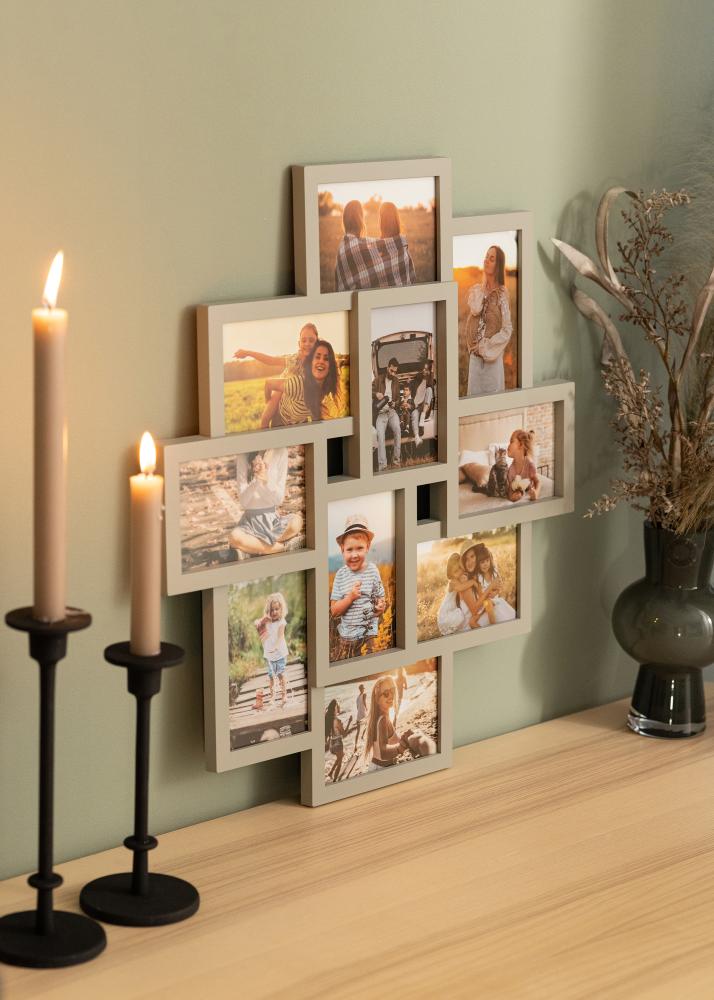 Tämä on kollaasikehys, jossa on tilaa 10 kuvalle koossa 10x15 cm. Kehys yhdistää pysty- ja vaakakuvia, mikä luo erittäin dynaamisen ilmeen. Tyylikäs harmaa väri nostaa esiin kuviesi värisävyt ja antaa aiheiden olla keskipisteenä. Voit asettaa kuvasi kehykseen irrottamalla takalevyn, joka pysyy paikallaan pienillä kääntyvillä klipseillä. Kaikki valokuvat pysyvät paikoillaan yhden takalevyn avulla, ja näin voit helposti asettaa kaikki kuvat kehykseen samanaikaisesti.