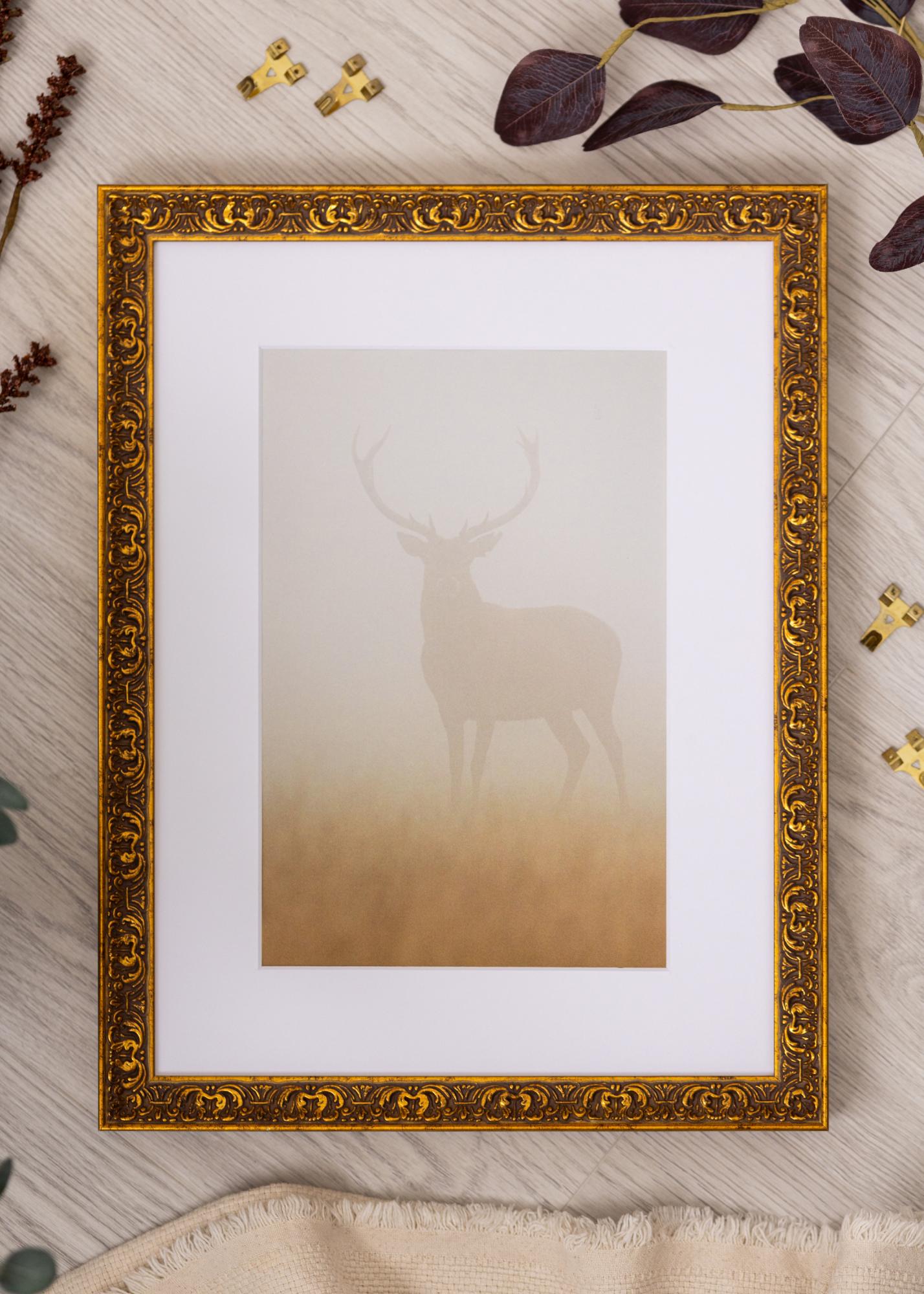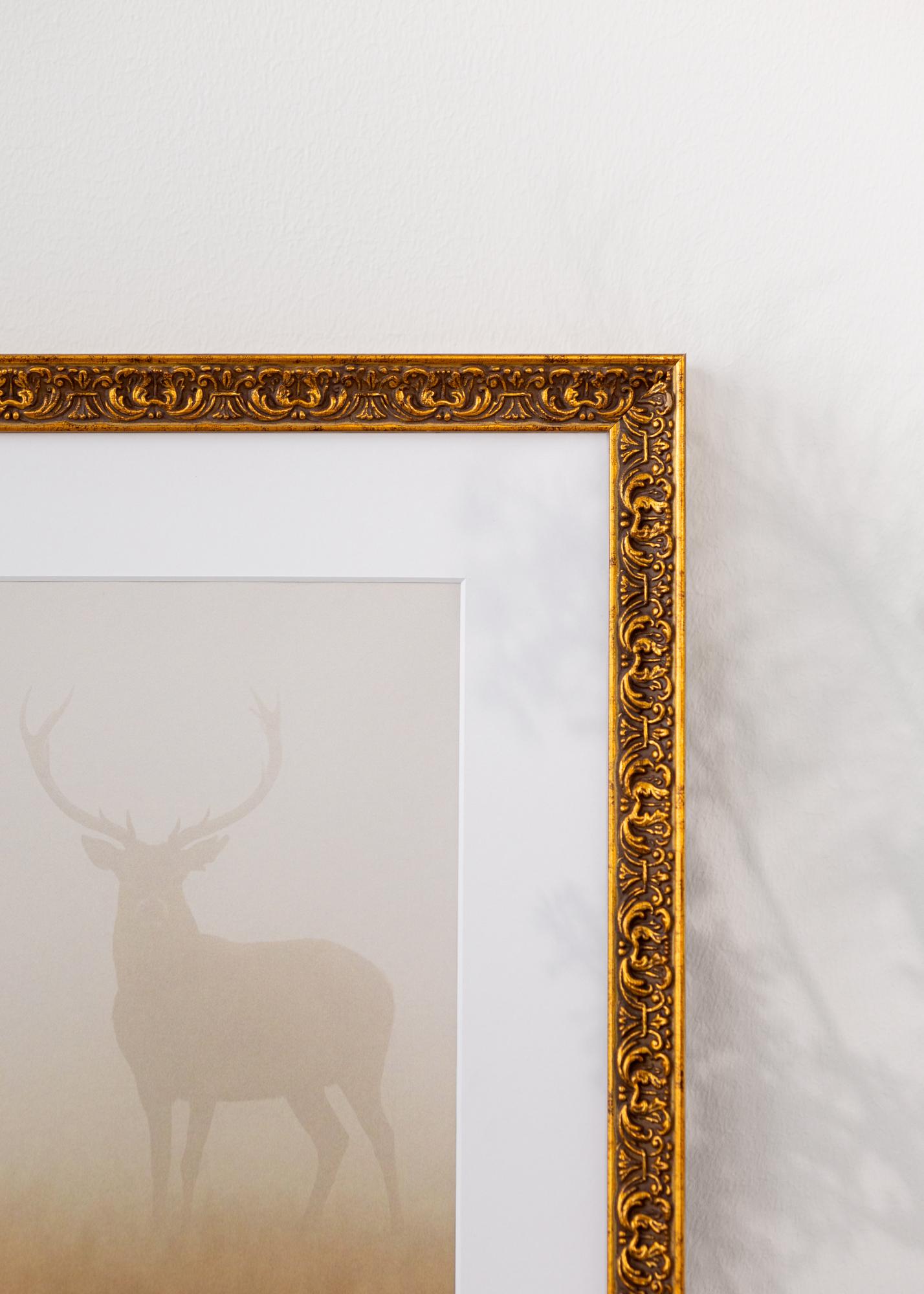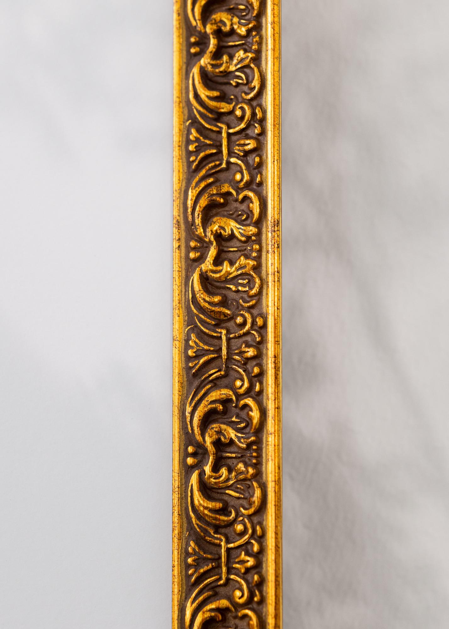 Tämä tyylikäs valokuvakehys, jonka koko on 70x100 cm, on täydellinen yhdistelmä perinnettä ja ylellisyyttä. Sen antiikkisen kultainen viimeistely ja monimutkaiset koristeelliset yksityiskohdat tuovat klassista kauneutta mihin tahansa huoneeseen. Kehys on valmistettu korkealaatuisesta puusta ja siinä on 25 mm leveä kehyslista sekä 24 mm syvyys, mikä antaa vankan ja kestävän rakenteen.