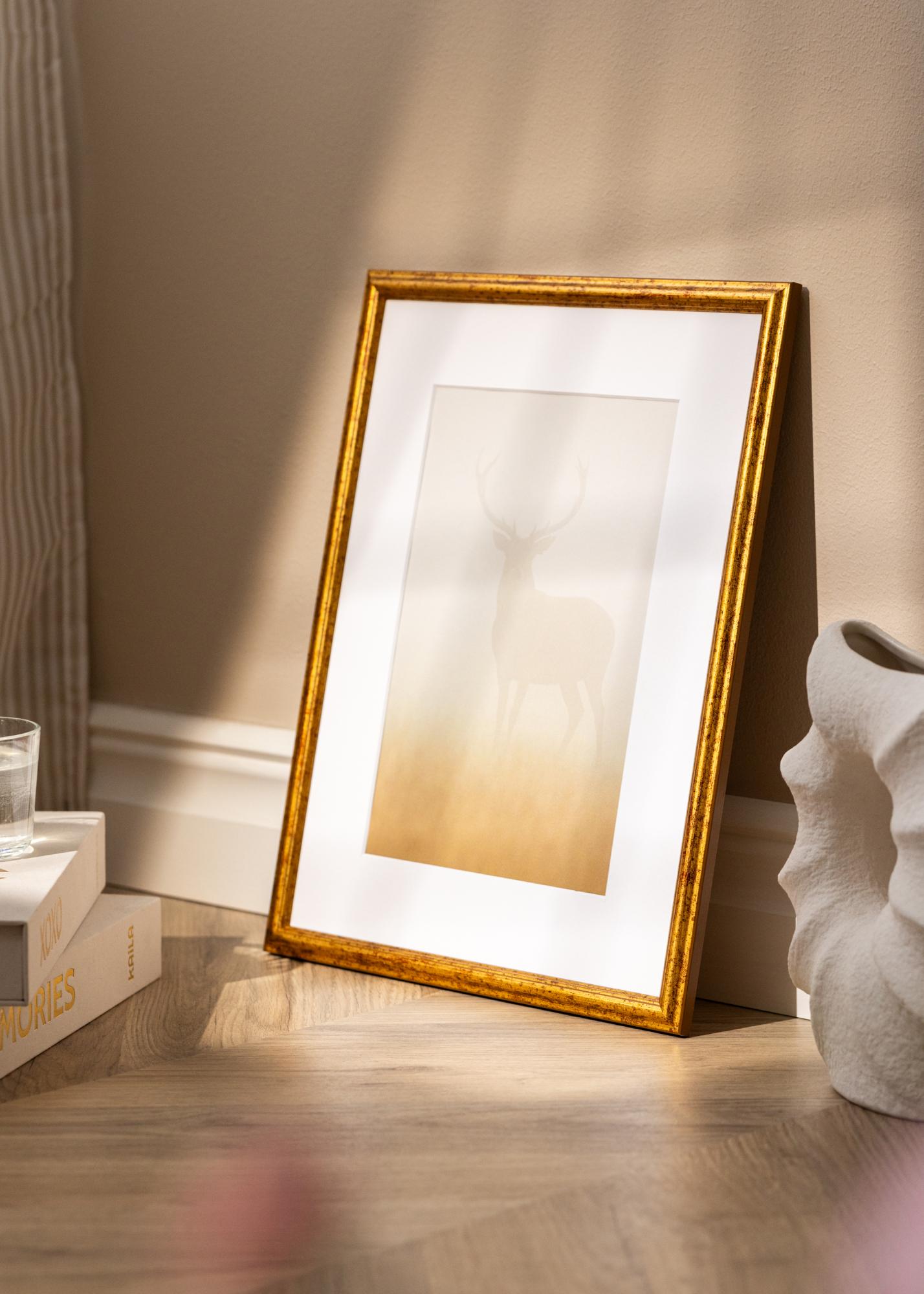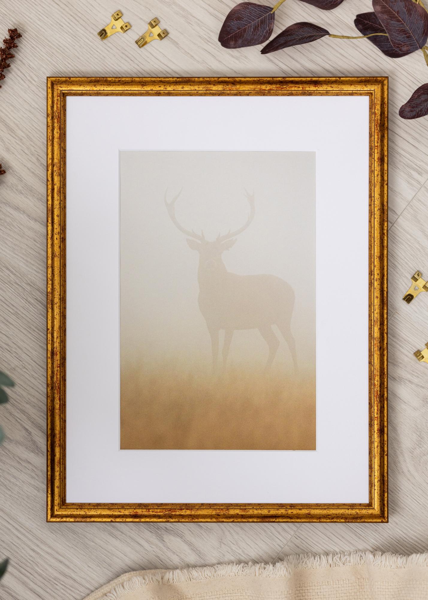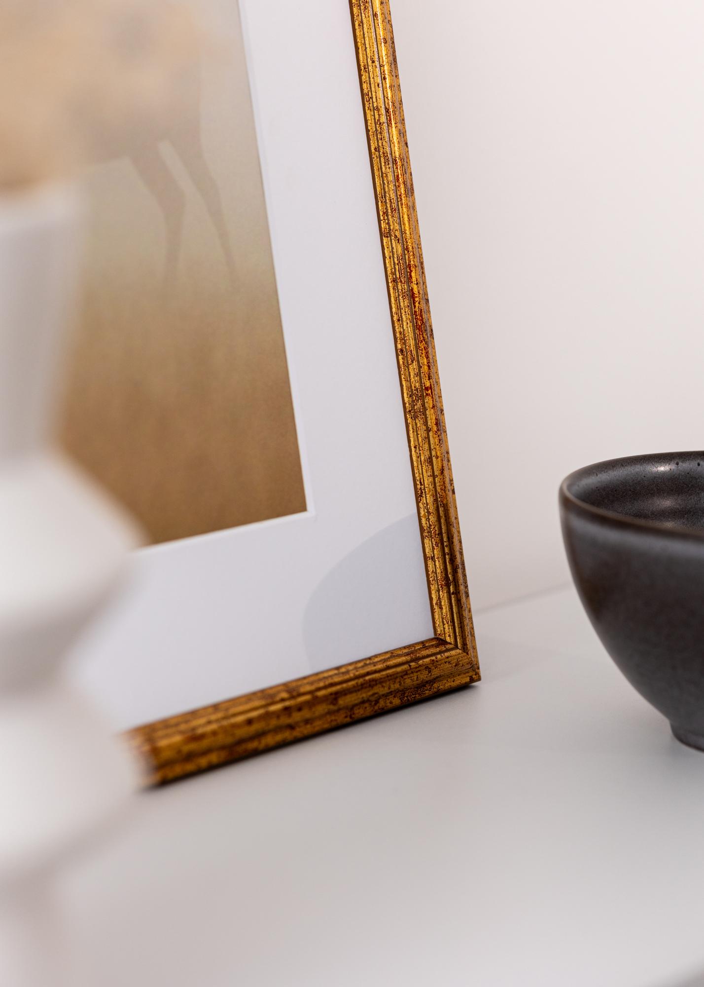 Tämä elegantti kultainen valokuvakehys on täydellinen yhdistelmä klassista muotoilua ja modernia toiminnallisuutta. Kooltaan 29,7x42 cm (A3) se on ihanteellinen korostamaan suosikkiaiheitasi, olivat ne sitten perinteisiä tai moderneja. Antiikkikullan väri hienovaraisella patinalla antaa kehykselle rustiikkista viehätystä, joka tuo kotiisi ripauksen eleganssia ja historiaa.