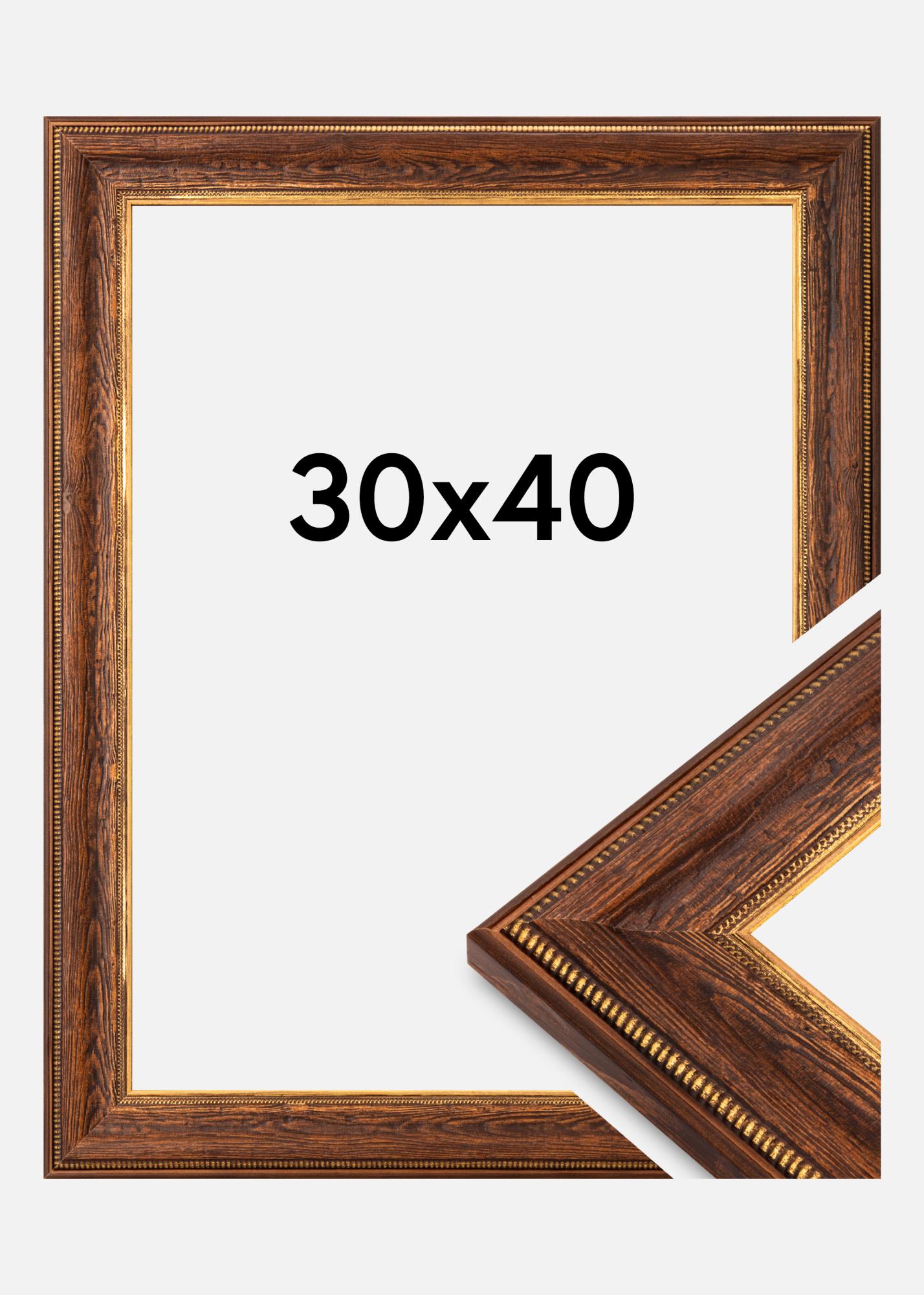 Tämä tyylikäs valokuvakehys kokoa 30x40 cm on täydellinen yhdistelmä rustiikkista viehätystä ja klassista eleganssia. Korkealaatuisesta puusta valmistettu kehys on syvän ja lämpimän ruskean värinen, joka tuo esiin puun luonnollisen rakenteen. Koristeelliset kultadetaljit sisäreunaa pitkin antavat hienostuneen ilmeen, mikä tekee tästä taulunkehyksestä ihanteellisen perinteisiin ja vintage-inspiroituihin sisustuksiin.