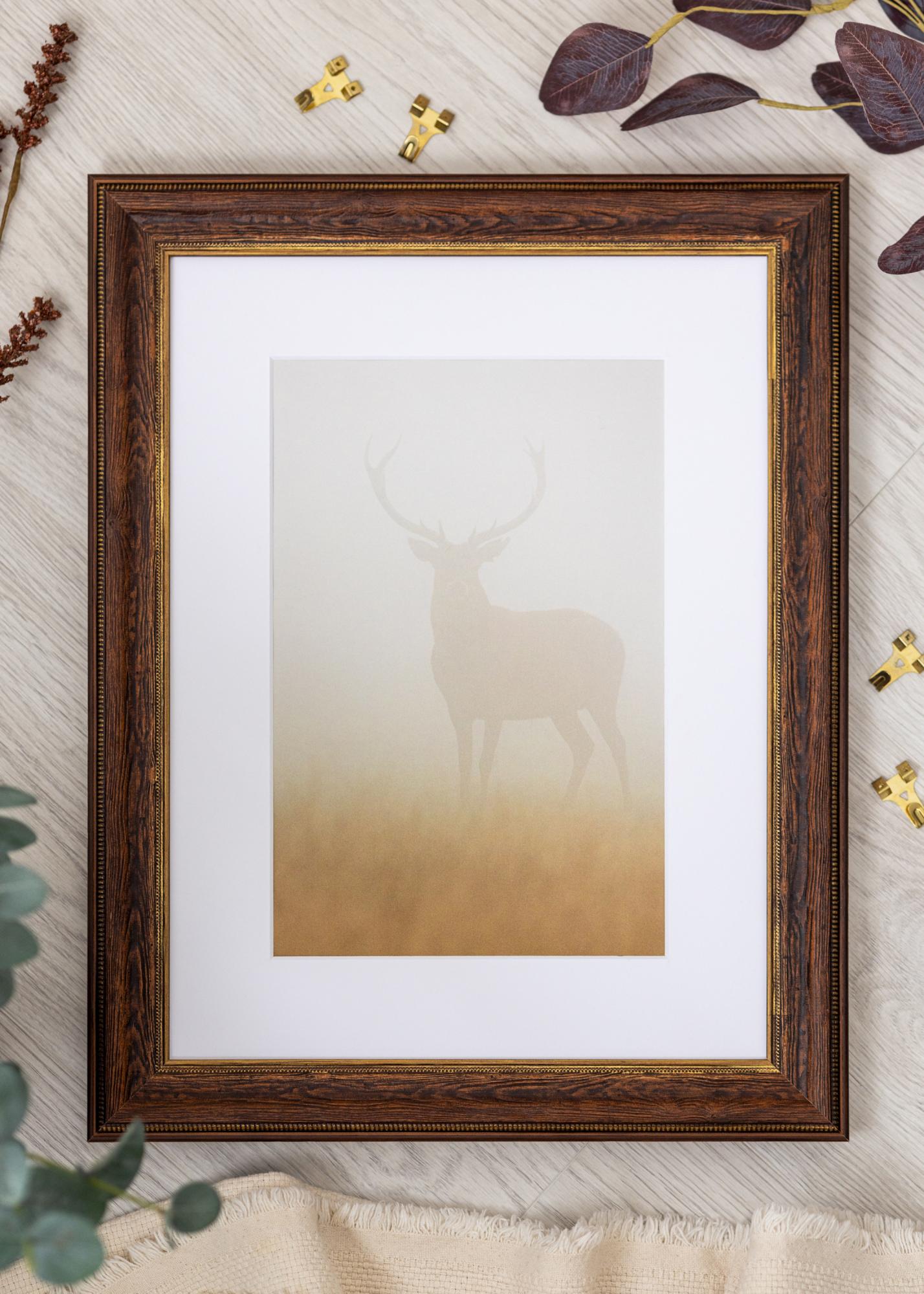 Tämä tyylikäs valokuvakehys kooltaan 42x59,4 cm on täydellinen yhdistelmä maalaismaista viehätystä ja klassista eleganssia. Valmistettu korkealaatuisesta puusta Italiassa, tässä kehyksessä on syvä ja lämmin ruskea väri, joka korostaa puun luonnollista rakennetta. Dekoratiiviset kultakoristeet sisäreunan varrella antavat hienostuneen kosketuksen, joka täydentää sekä perinteisiä että vintage-henkisiä sisustuksia.
