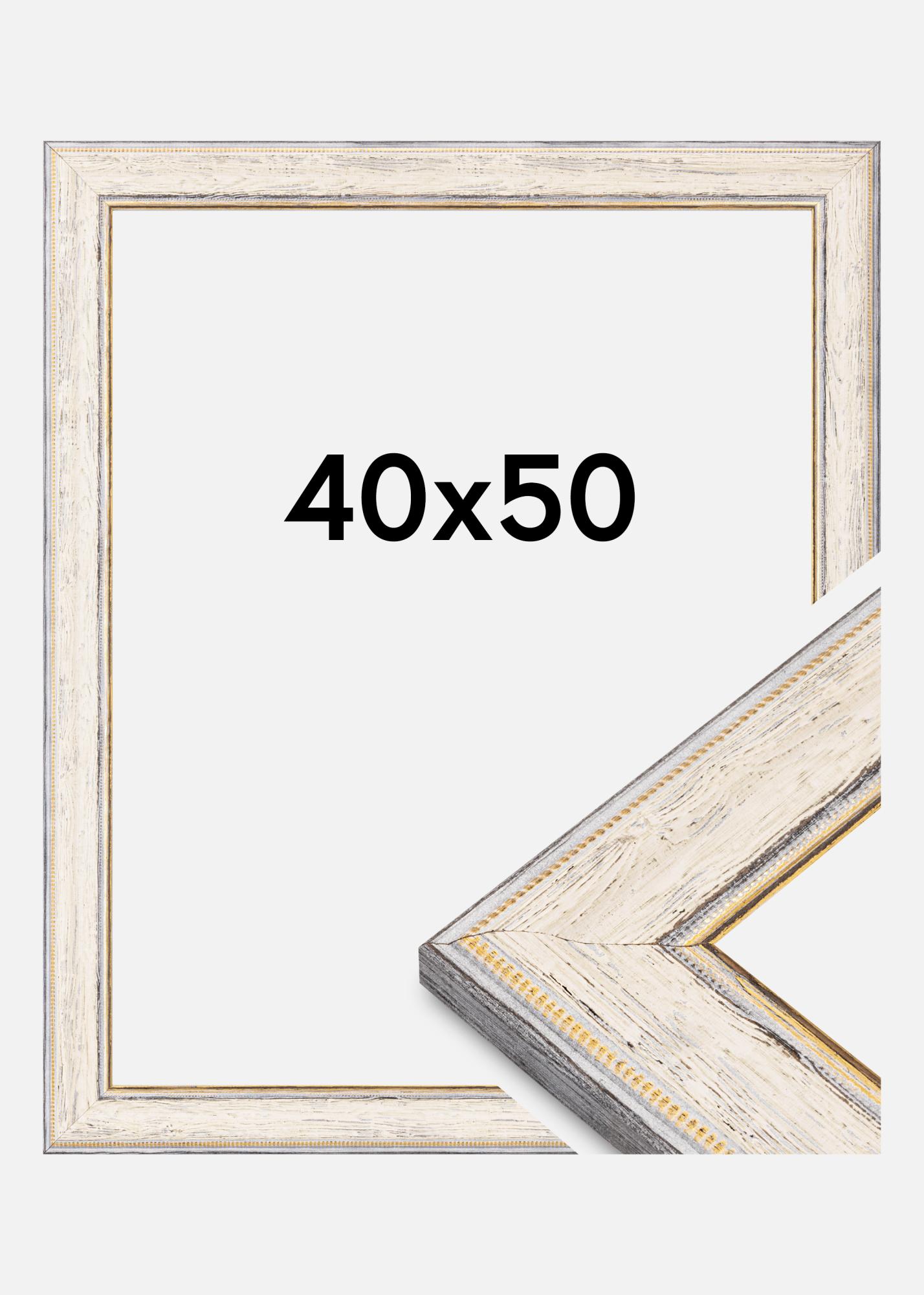 Tämä tyylikäs valokuvakehys on täydellinen yhdistelmä vintage-inspiraatiota ja modernia toiminnallisuutta. Koon 40x50 cm se on ihanteellinen tuomaan esiin suosikkivalokuvasi tai taideteoksesi. Kehys on valmistettu puusta ja siinä on kaunis, rustiikkinen valkoinen ja harmaa viimeistely, joka antaa sille viehättävän ikääntyneen ilmeen. Hienovaraiset kultaiset yksityiskohdat sisäreunassa lisäävät klassisen kosketuksen, joka sopii erinomaisesti sekä maalaismaiseen että shabby chic -sisustukseen.
